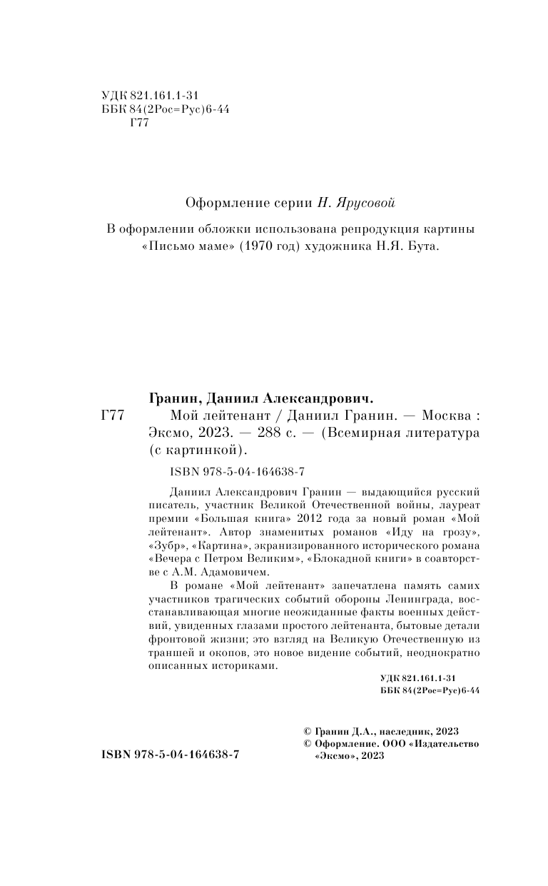 Книга: Мой лейтенант (Гранин Даниил Александрович); ООО "Издательство "Эксмо", 2022