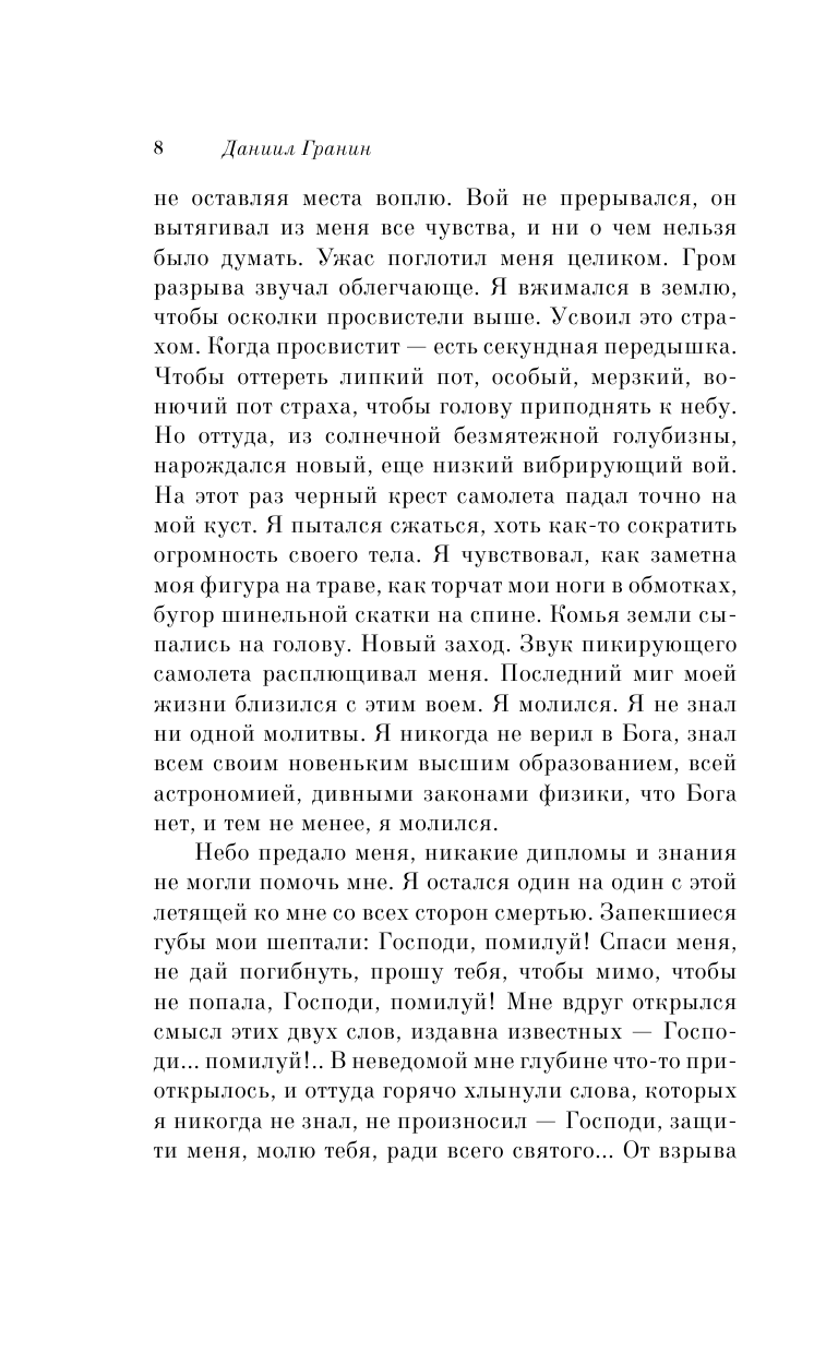 Одна из последних книг Даниила Гранина написанная им в конце жизни. Блокада Ленинграда, фронт на подступах к нему, будни, быт, размышления о войне, правда увиденная им из окопов - все это написано Граниным, и написано мастерски, так что отрываться от чтения не хочется. Также очень интересно и познавательно для меня было узнать как оживал Ленинград после блокады, как жили вернувшиеся с войны солдаты, как восстанавливали город, какие психологически трудности испытывали победители, как тяжело было их семьям - все это вынесено им и из собственной жизни в том числе, подмечено, записано. Гранин был свидетелем своего времени. Читается книга легко, оформление вполне достойное, пусть бумага не очень белая, но за счет этого книга имеет небольшой вес.