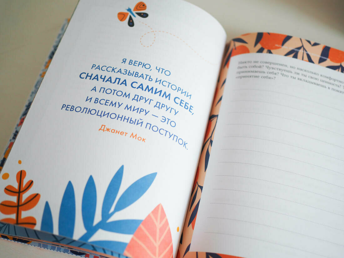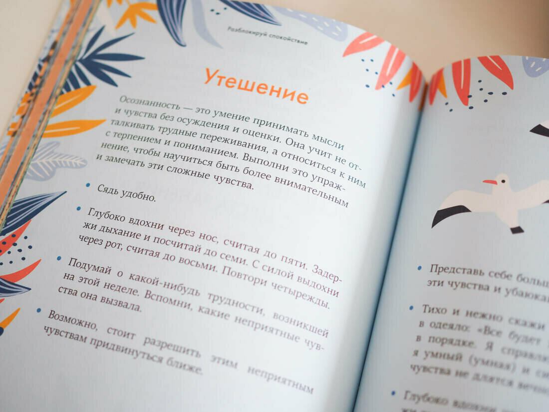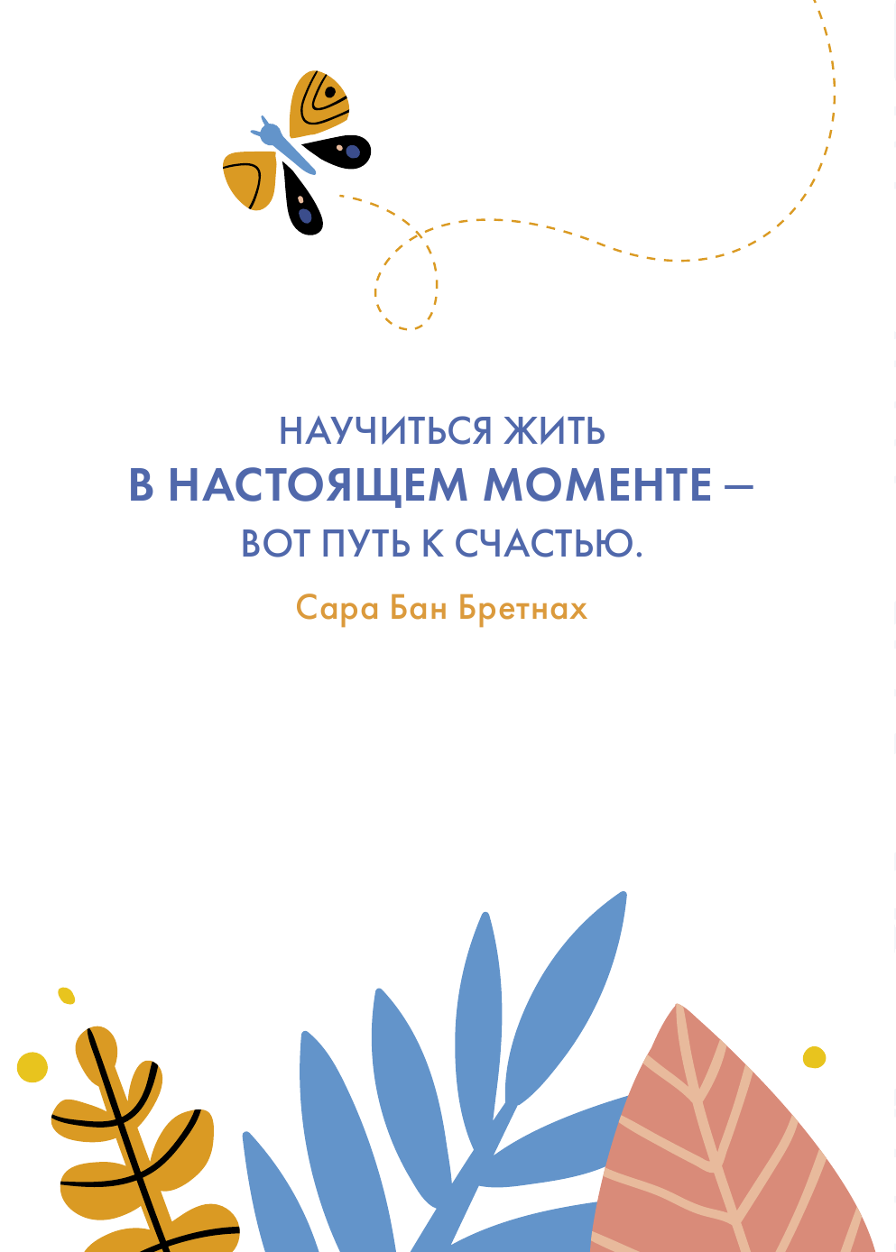 С этого дневника хорошо начинать свой путь самопознания. Тут самые простые и распространенные практики: дыхание по схеме 5-7-8, квадратное дыхание, «поза силы», «вкусное» упражнение, сканирование тела, осознанная прогулка, метод «А, Б, В», медитации. Понятные вопросы, которые позволят заглянуть вглубь себя и просто очень симпатичное оформление. Издание приятно держать, листать, рассматривать и вести записи. А еще это отличный подарок!