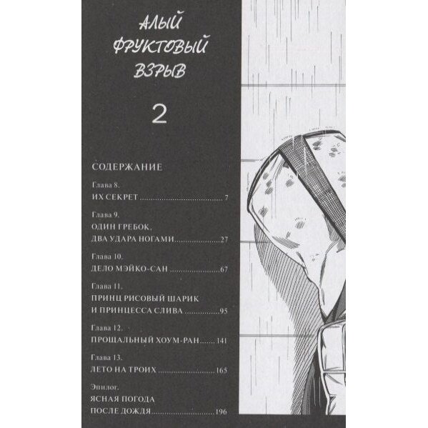 Невероятно милый заключительный томик Нацуко Такахаси Алый фруктовый взрыв . Танкобон по объёму весьма небольшой и содержит пару тройку историй в жанре седзе. Наиболее всего понравился сингл Один гребок, два удара ногами . Рисовка у мангаки весьма приятная, сюжет незамысловат и достаточно прост. Жаль, что Такахаси не работает в жанре дзесей, тогда все было бы намного интереснее. Мангу приобретала осознанно, после Субару, уже знала чего ожидать. Поэтому рекомендую данный двух томик всем любителям седзе!