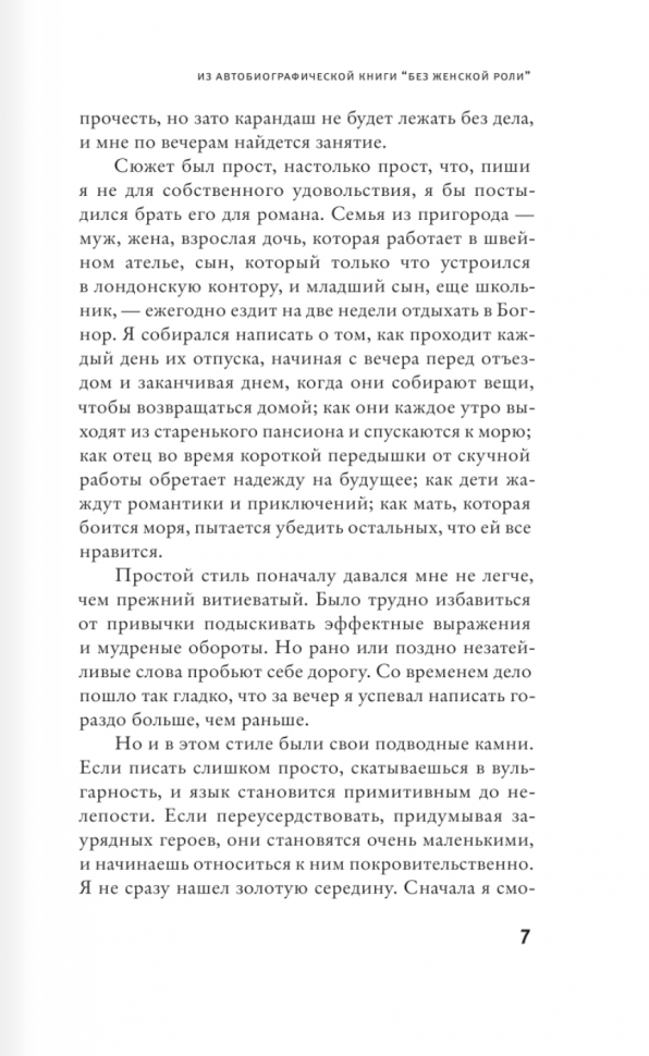 Замысел романа “Две недели в сентябре” гениально прост. Мы наблюдаем за мистером Стивенсом, офисным клерком, его милой, но нервной женой Флосси и их тремя детьми – Диком, работником конторы, Мэри, помощницей портнихи, и школьником Эрни. Начинается все с того, что семья готовится к летним каникулам и отправляется на поезде из Лондона на побережье. Оказавшись там, они наслаждаются отдыхом. Ничто в этой истории не удивляет. Тем не менее эта книга – абсолютное наслаждение, с первой и до последней страницы. Шеррифф с нежностью описывает всех членов семьи и их отношения, показывая простую радость, которую каждый из них получает от главного для них события в году. Эта книга в очередной раз доказывает, что Шеррифф мастерски умеет рассказать о повседневной жизни.
