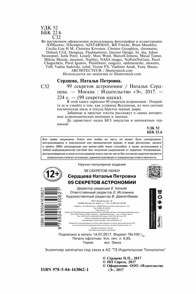 Книга: 99 секретов астрономии (Наталья Сердцева); Эксмо, БОМБОРА, 2022