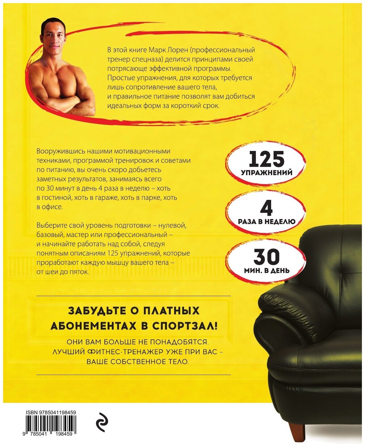 В этой книге Марк Лорен (профессиональный тренер спецназа) делится принципами своей потрясающе эффективной программы – простые упражнения, для которых требуется лишь сопротивление вашего тела + правильное питание позволят вам выглядеть идеально за очень короткие сроки.