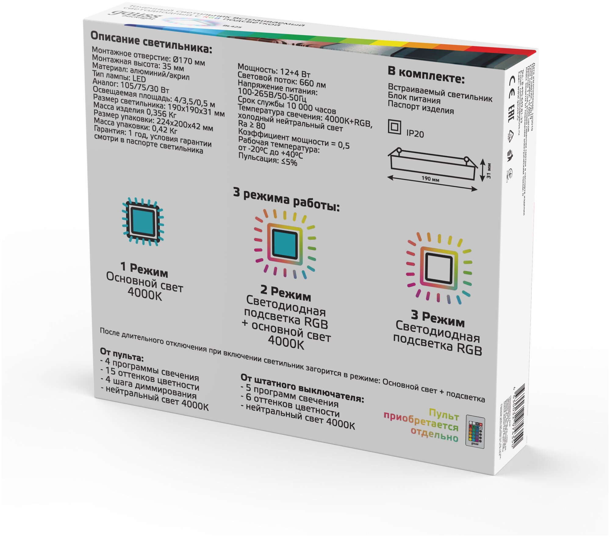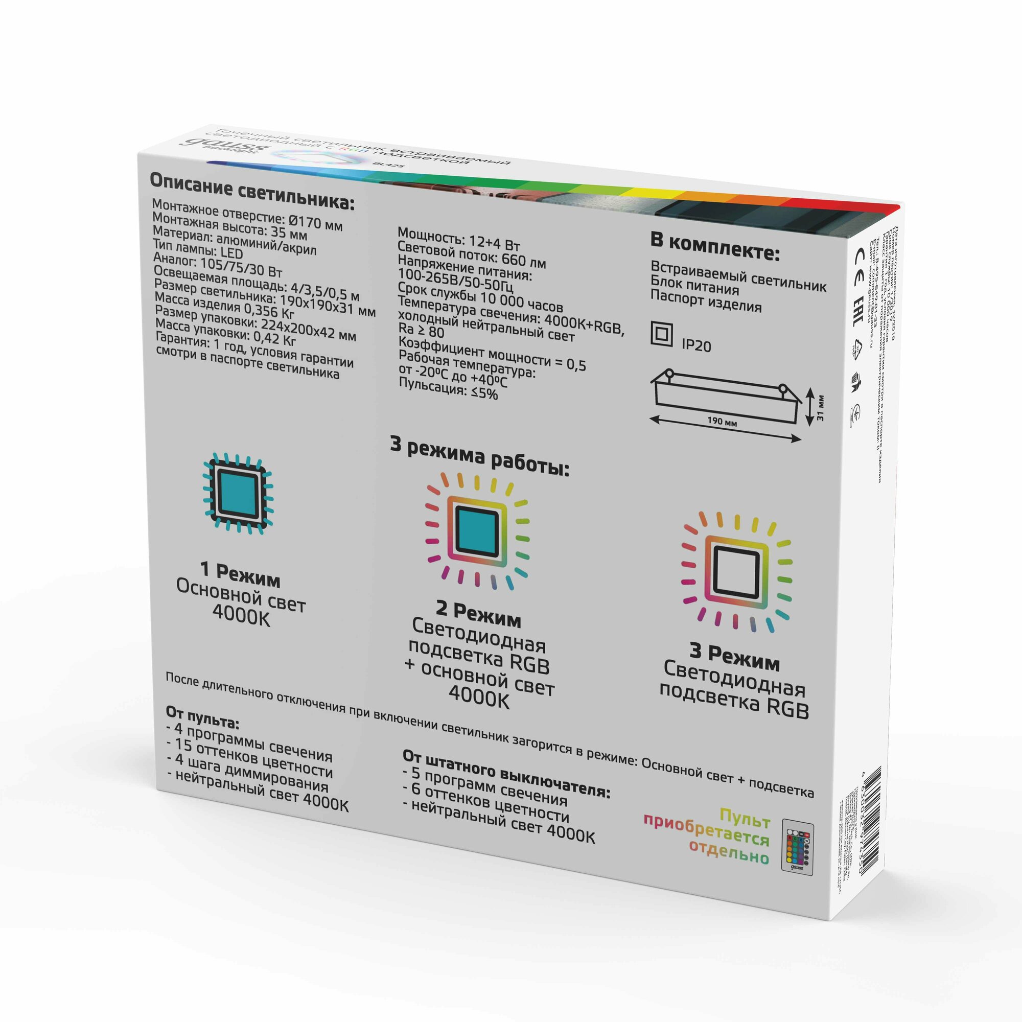 | Модель продукта | Gauss Backlight RGB |