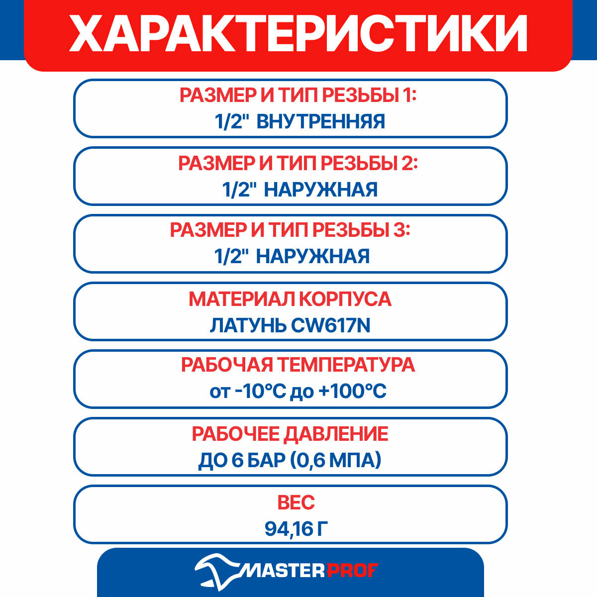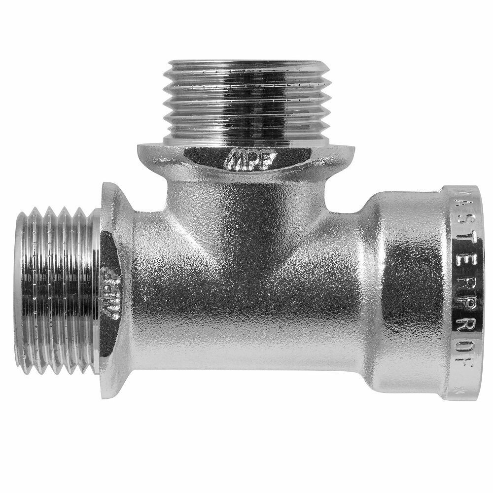 Тройник 1/2" с ограничителем MasterProf ИС.072229 служит для разветвления потоков трубопровода под прямым углом в системах холодного и горячего водоснабжения и отопления. Благодаря наличию ограничителя на наружной резьбе данного фитинга создается дополнительное препятствие смещению и выдавливанию уплотнительных материалов при закручивании резьбы. Для облегчения процесса монтажа на бортике наружной резьбы имеется площадка под гаечный или разводной ключ.