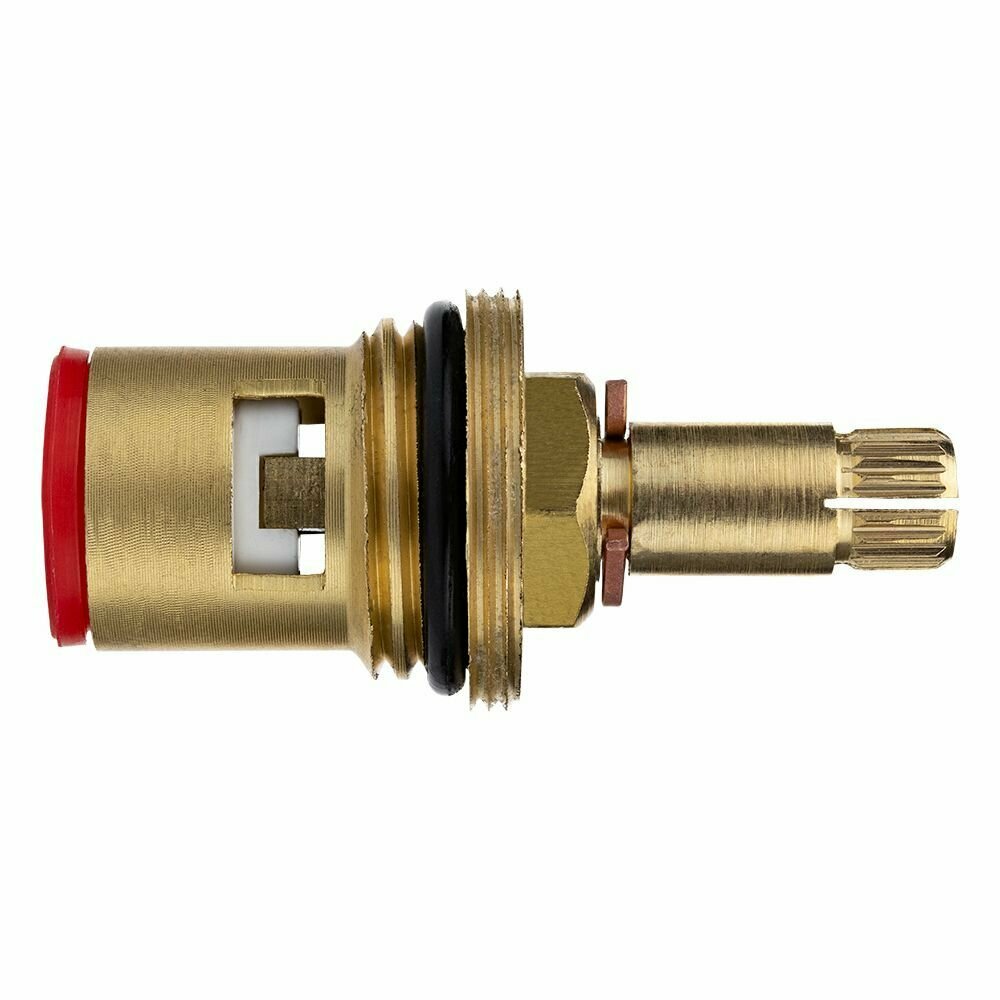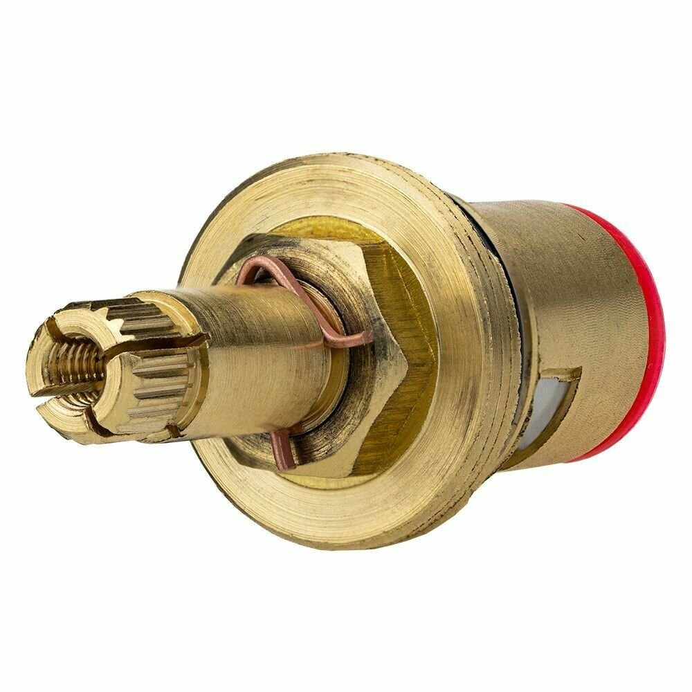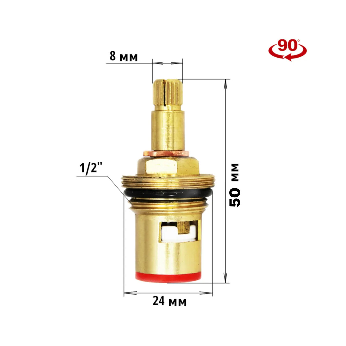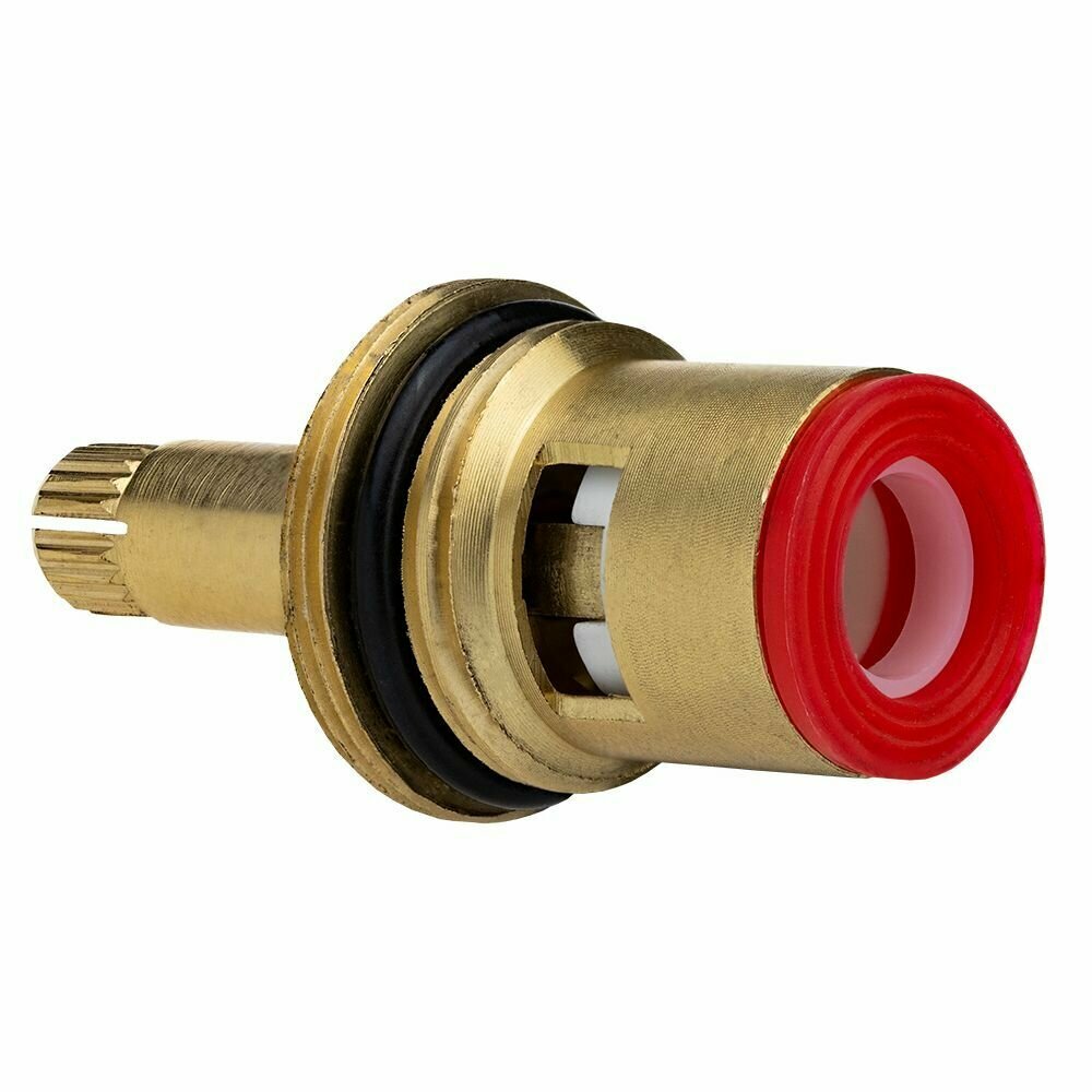 Кран-букса керамическая с дополнительной резьбой. Используется для двуручковых (с двумя маховиками) смесителей. Внутренний запорный элемент в данной кран-буксе выполнен из керамических отполированных дисков (пластин) с отверстиями (статичного и поворотного), совмещение или развод которых обеспечивает работу смесителя.