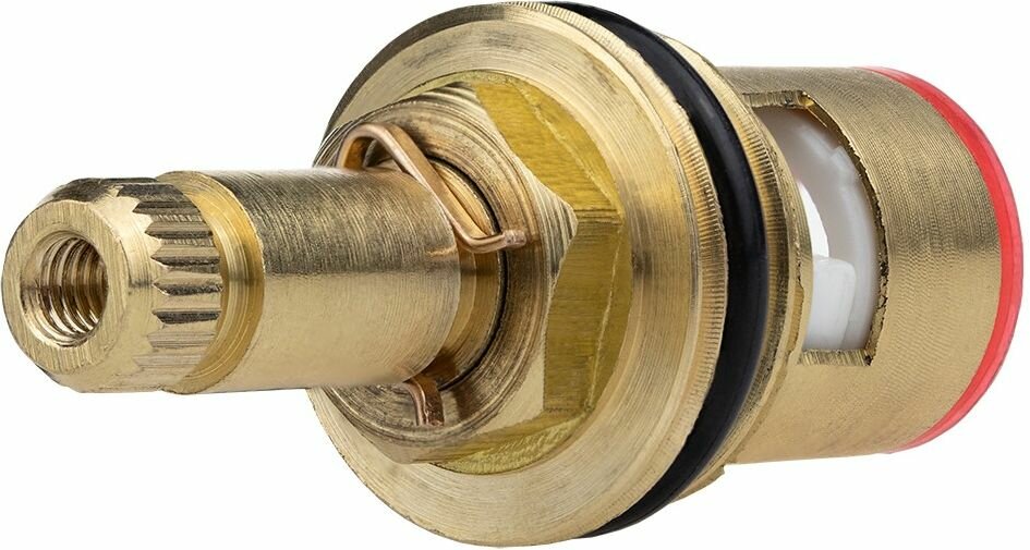 Кран-букса мет./керам. под крест MasterProf 1/2", 8х24, пов. 90 град. ИС.130419 с дополнительной резьбой используется для двуручковых (с двумя маховиками) смесителей.Внутренний запорный элемент в данной кран-буксе выполнен из двух металлокерамических тщательно отполированных дисков (пластин) с отверстиями (статичного и поворотного), совмещение или развод которых обеспечивает работу смесителя.От закрытия до открытия всего пол оборота ручки смесителя.Срок службы до 5 лет (износ керамических дисков).На данной кран-буксе присутствует дополнительная резьба на «юбке кран-буксы для подсоединения маховика.Достоинства керамической кран-буксы: бесшумность, длительный период эксплуатации, легкость включения и отключения подачи воды.