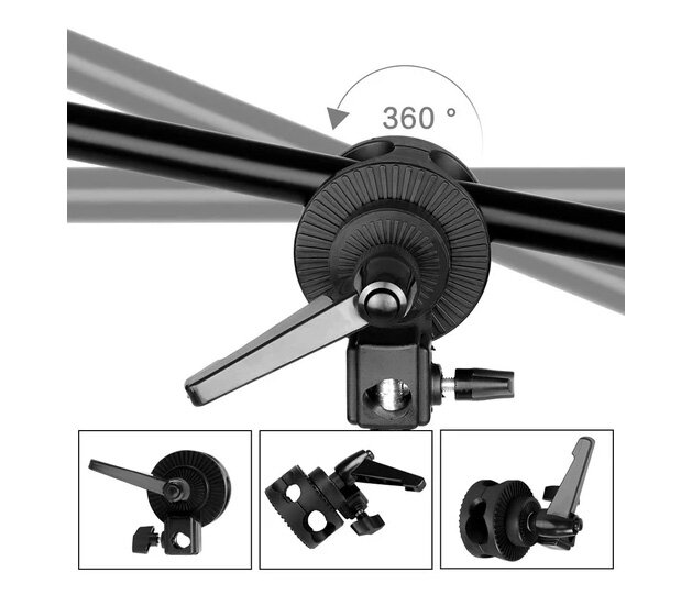 | Комплектация | 3 осветителя, 3 софтбокса, 2 стойки, 1 журавль, 3 лампы, стойка |