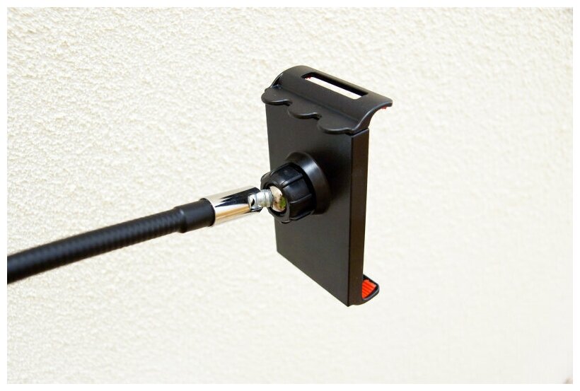 Профессиональный напольный держатель поможет вам правильно зафиксировать смартфон или планшет достаточно высоко над полом, чтобы вы могли делать видеосъемку смартфоном или планшетом, не пользуясь стойками или штативами. Напольный держатель имеет гибкую шею и раздвижной держатель смартфона / планшета на его конце, с шарниром.