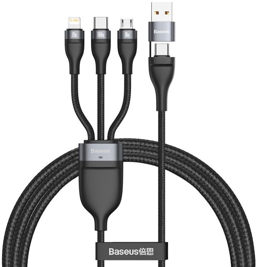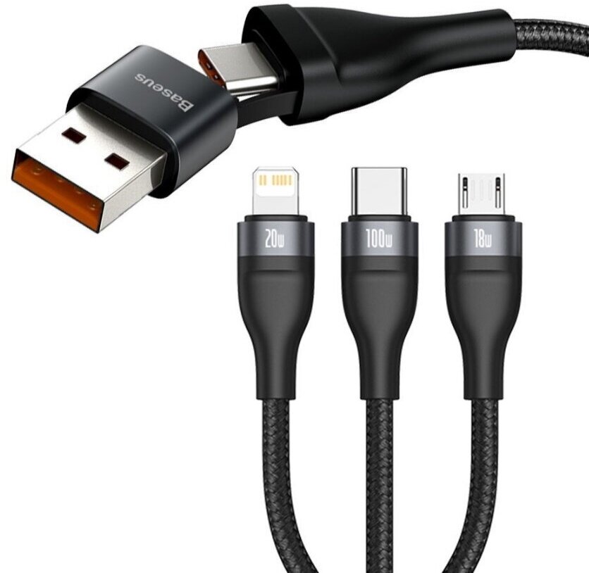 Кабель Baseus Flash Series USB / Type-C - MicroUSB / Lightning / Type-C 100W 1.2m Gray-Black CA2T3-G1