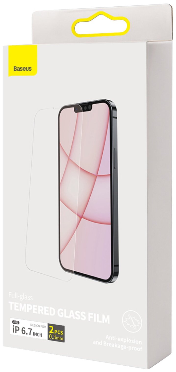 Стекло защитное Baseus для APPLE iPhone 13 Pro Max 0.3mm Full Screen Full Glass Tempered Glass Film 2pcs Transparent SGBL020202