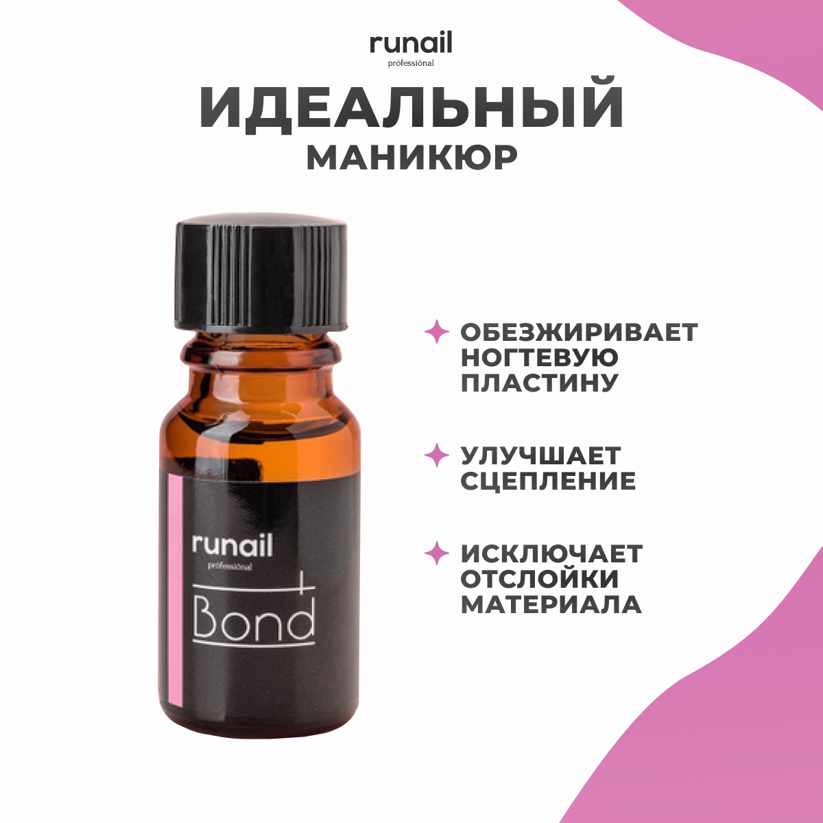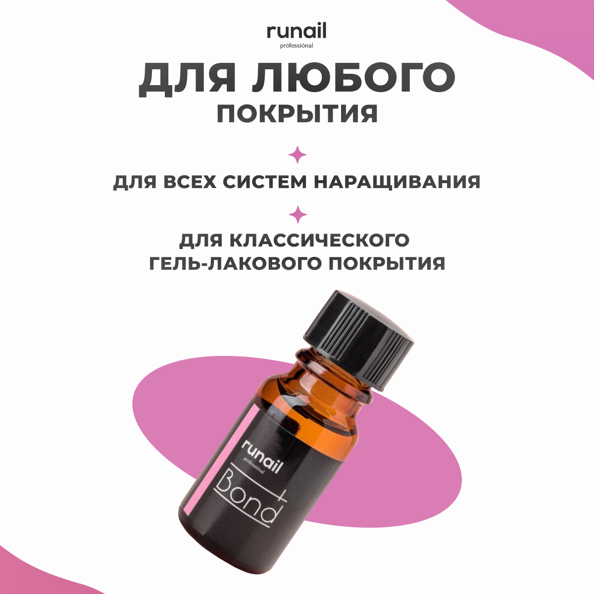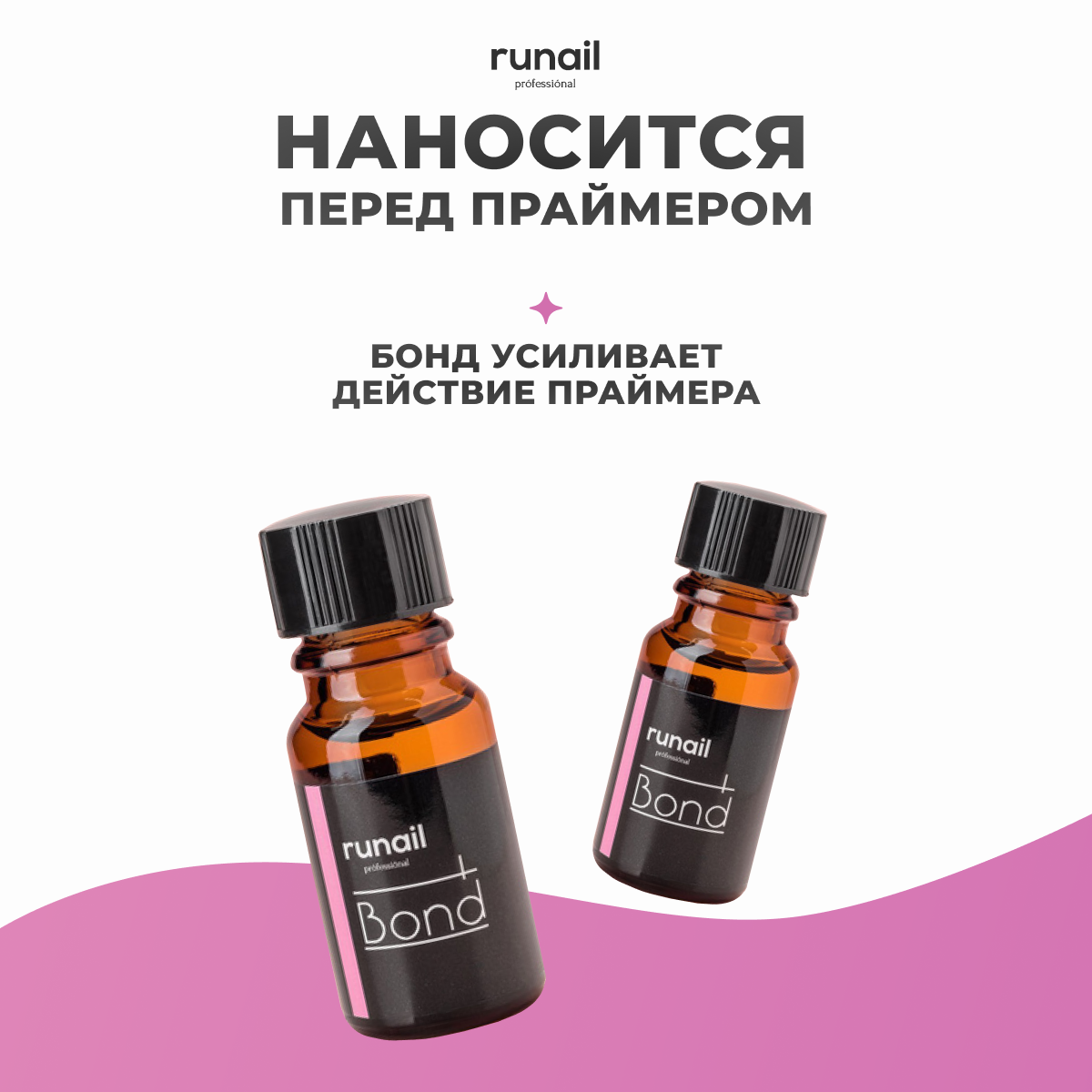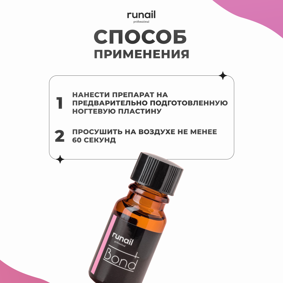 Бонд - адгезивное средство RuNail для подготовки ногтей к наращиванию. Применяется непосредственно перед процессом нанесения геля и служит для лучшего сцепления искусственного покрытия с ногтевой пластиной. Хорошо подсушивает поверхность, исключает отслойку. Не содержит красителей и отдушек. Не проникает в нижние слои ногтевой пластины. Совместим с любой технологией наращивания ногтей.
