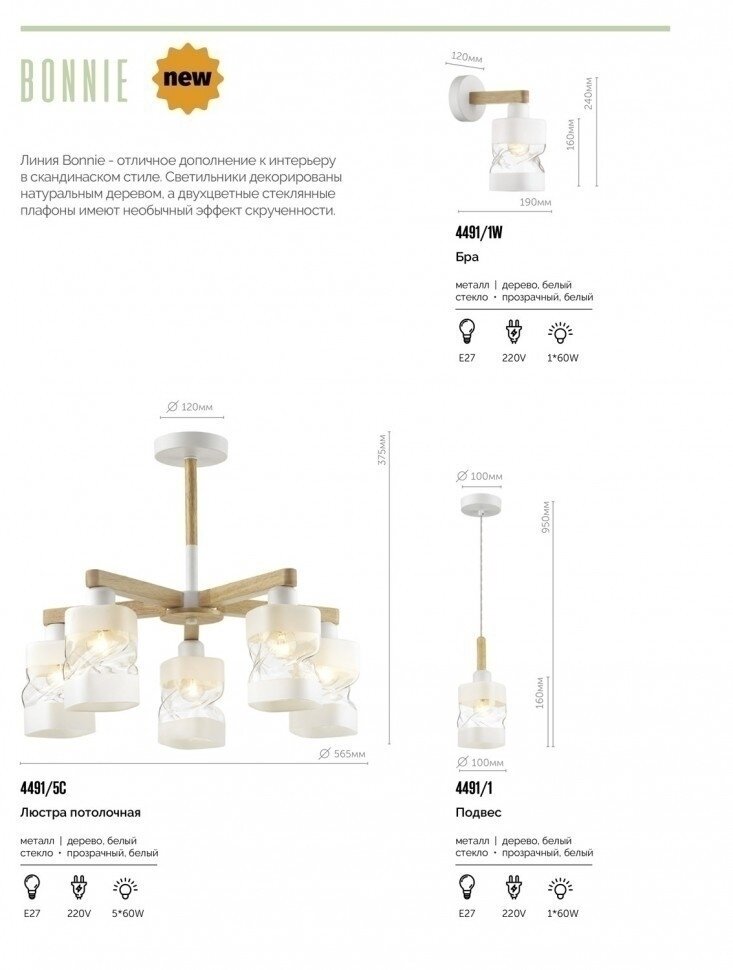 - Потолочная люстра Lumion Bonnie 4491/5C, 4491/1w, 4491/1