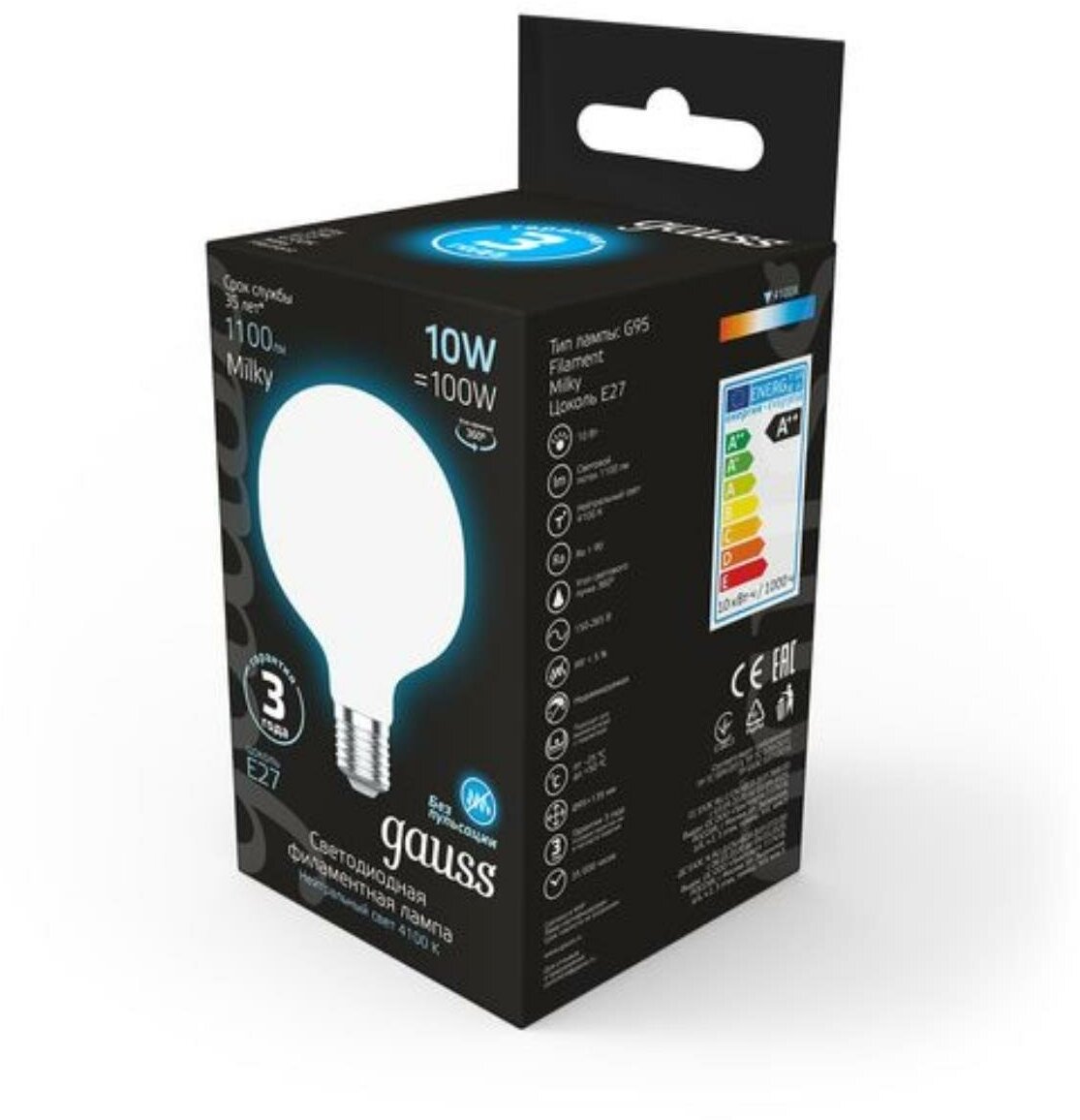 Светильник Gauss Лампа Filament LED milky Е27 G95 10W 1100lm 4100К