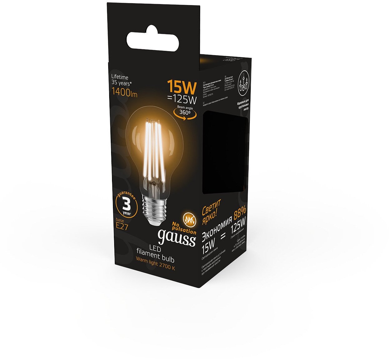 Светодиодные филаментные лампы Gauss - это новейшие технологии в светотехнике. Лампы имеют привычный вид классических ламп накаливания, освещают пространство на 360о и дают больше света по сравнению с обычными светодиодными лампами за счет прозрачной колбы. Идеально подходят для хрустальных люстр и открытых светильников, а также для реализации дизайнерских решений, где важен вид классических ламп накаливания.