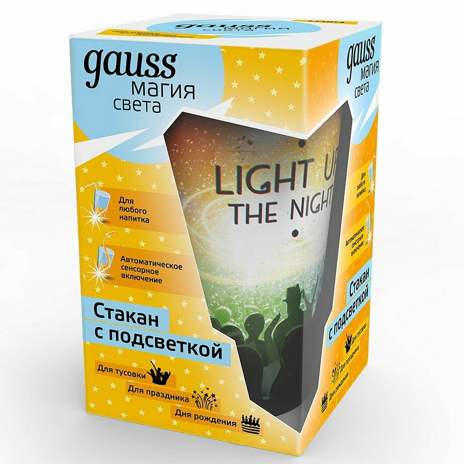 Cветильник в виде стакана с автоматической подсветкой от Gauss - магия света для поддержания настроения и ярких эмоций! Подсветка автоматически включается при добавлении любого напитка (ограничение по температуре до 40С). Стакан будет великолепно смотреться в любой обстановке, при приглушенном свете. Может использоваться для поддержания праздничной атмосферы (вечеринок, празднования и т.п.) так и для ситуационных интерьерных решений (романтическая обстановка, уютная вечерняя атмосфера). Идеально подойдет для подарка и яркого аксессуара на любой праздник.