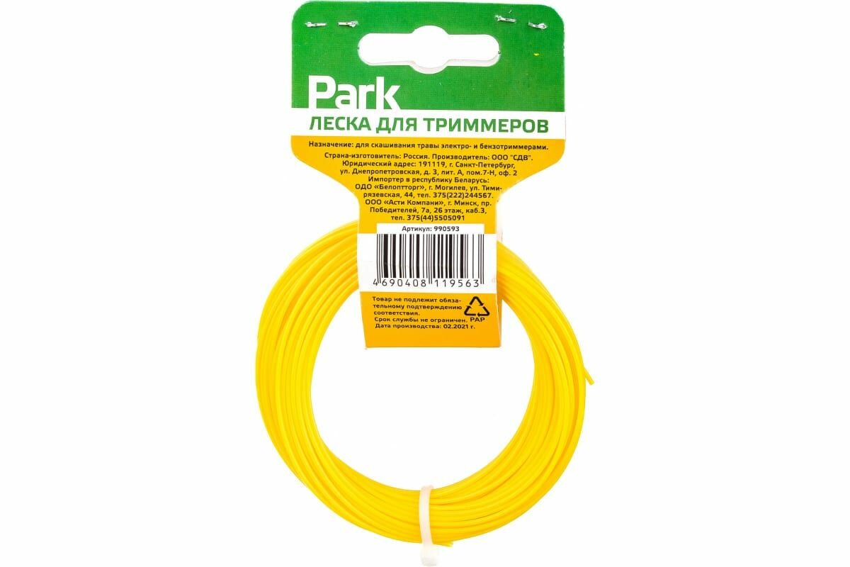 Леска Park предназначена для скашивания травы совместно с бензо- или электротриммером. Леска изготовлена из качественного, прочного и износостойкого материала - нейлона.