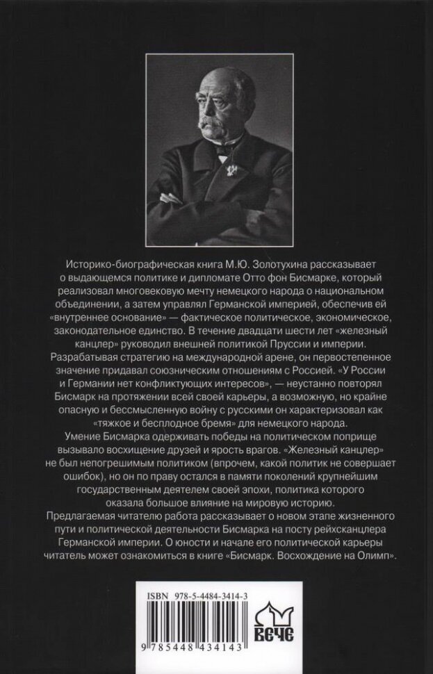 Историко-биографическая книга М.Ю. Золотухина рассказывает о выдающемся политике и дипломате Отто фон Бисмарке, который реализовал многовековую мечту немецкого народа о национальном объединении, а затем управлял Германской империей, обеспечив ей "внутреннее основание" - фактическое политическое, экономическое, законодательное единство. В течение двадцати шести лет "железный канцлер" руководил внешней политикой Пруссии и империи. Разрабатывая стратегию на международной арене, он первостепенное значение придавал союзническим отношениям с Россией. "У России и Германии нет конфликтующих интересов", - неустанно повторял Бисмарк на протяжении всей своей карьеры, а возможную, но крайне опасную и бессмысленную войну с русскими он характеризовал как "тяжкое и бесплодное бремя" для немецкого народа.