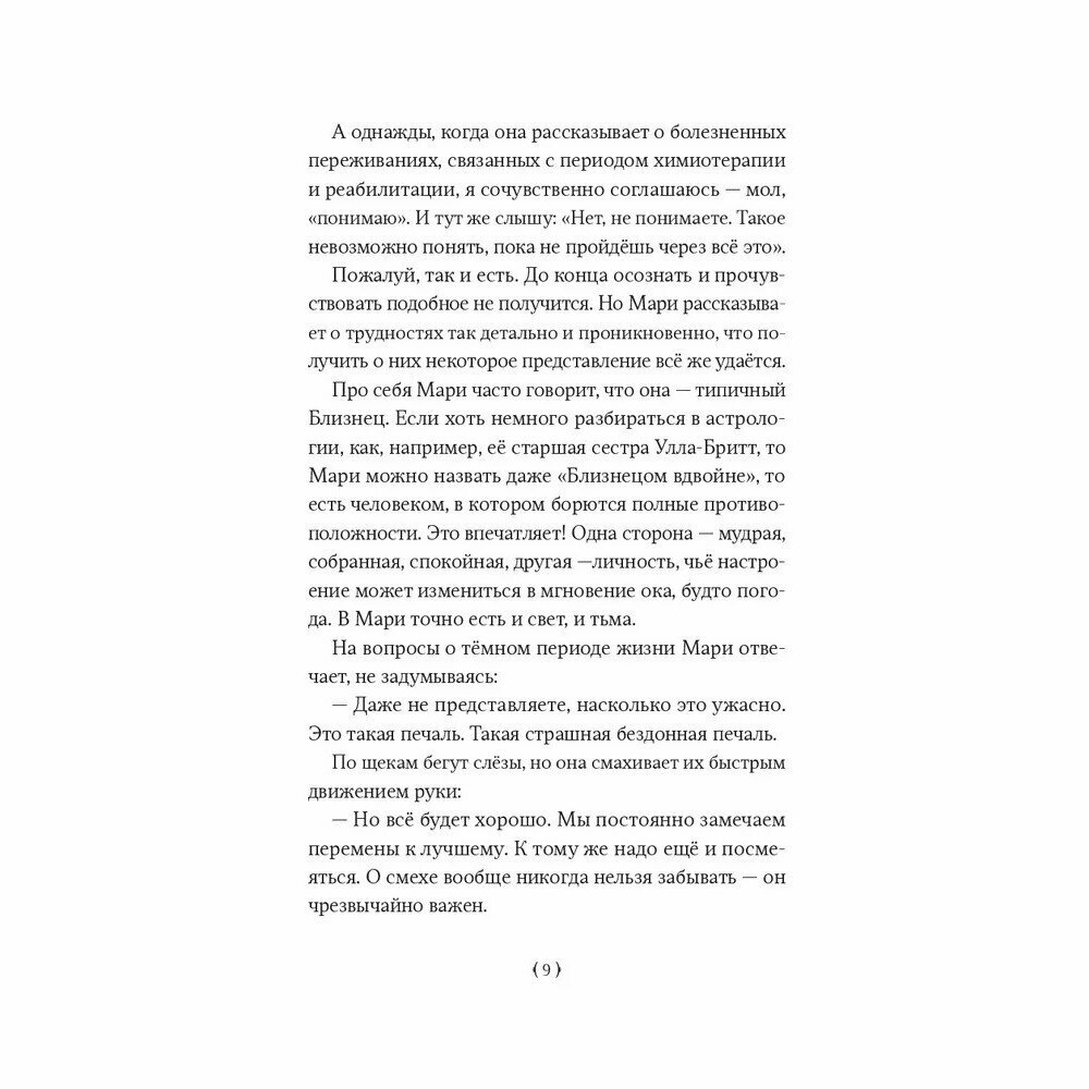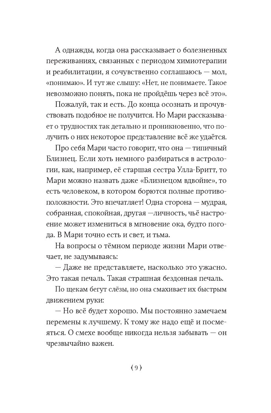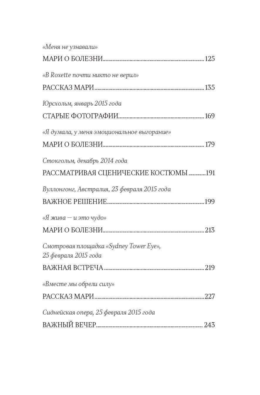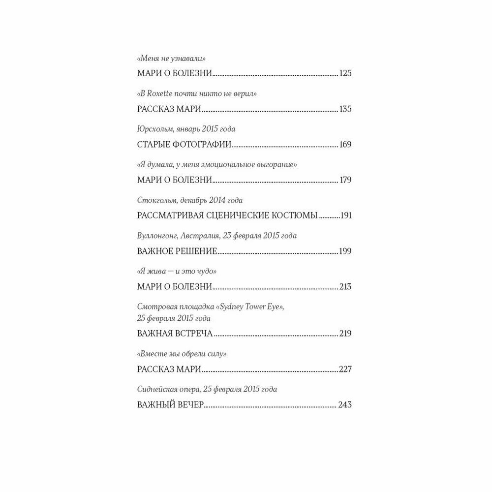 В этой книге слово предоставлено Мари Фредрикссон, её родным и близким. На этих страницах — рассказ о большой любви, бездонной печали, невероятном успехе и реванше, взятом вопреки всем превратностям судьбы. И всё это лишь благодаря огромной любви к жизни.