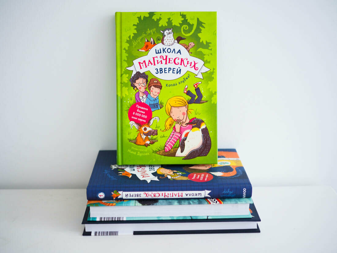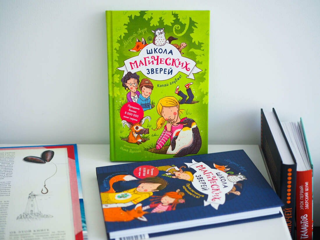 Читать книги надо по очереди. Первая - «Школа магических зверей. Приключения начинаются!». Вторая - «Школа магических зверей. Копай глубже!». Надо отметить, что вторая книга мне показалась в прямом смысле «глубже».