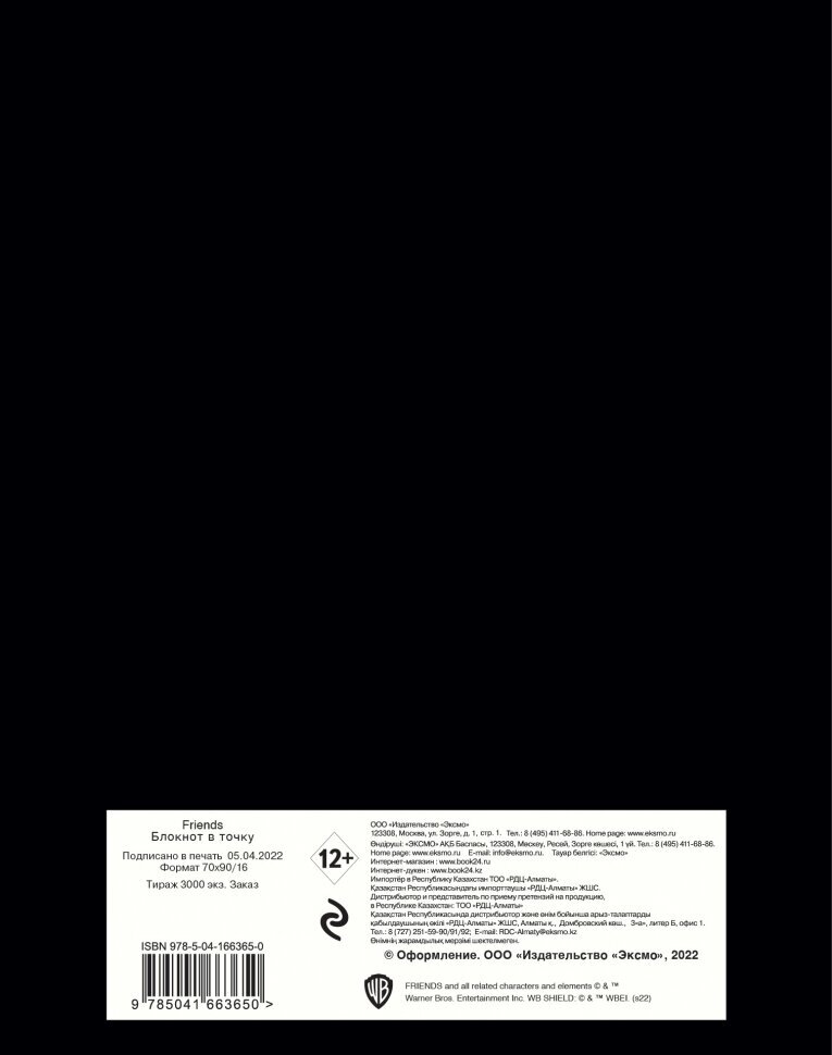 Friends. Блокнот в точку (bullet journal 162x210мм твердая обложка пружина бумага 120 стр. черный); ООО "Издательство "Эксмо", 2022