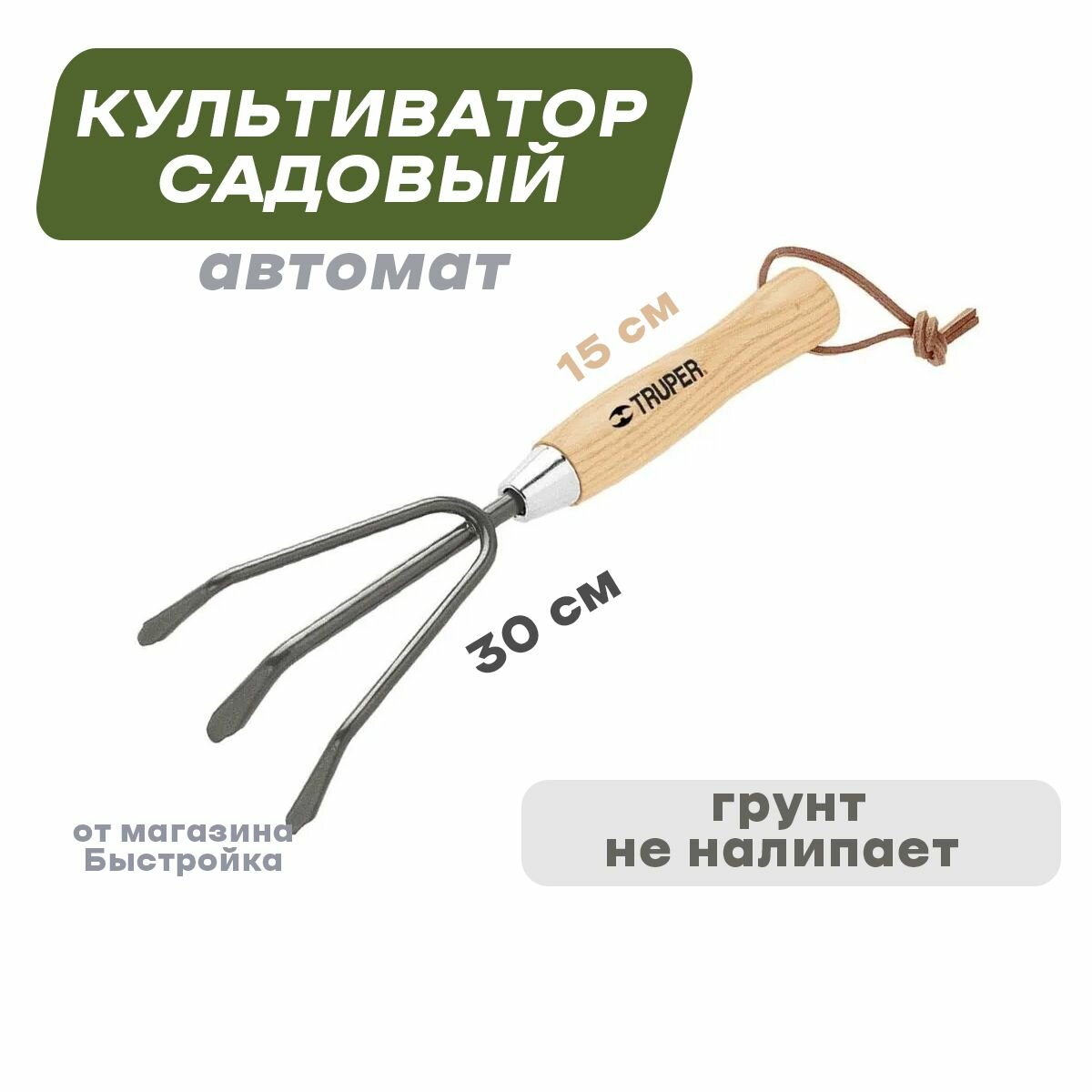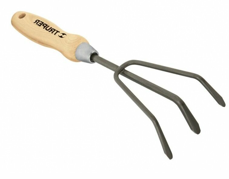 **Культиватор ручной Truper 10524** предназначен для рыхления грунта на дачном участке. Может использоваться для тех же целей дома при уходе за комнатными растениями. Оснащен эргономичным деревянным черенком, который удобно лежит в ладони, не скользит и не нагружает кисть при длительной эксплуатации. Отверстие в рукоятке обеспечивает компактность хранения - позволяет подвесить изделие на крючок в хозяйственном блоке или кладовке.