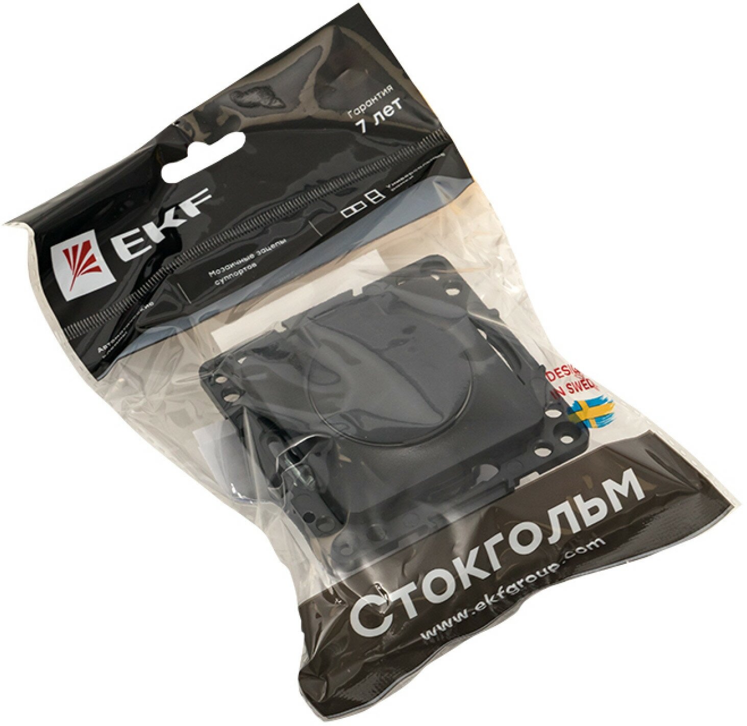 EZR16-028-10-44 EKF PROxima Стокгольм Черный Розетка с/з со шторками и крышкой 16А IP44