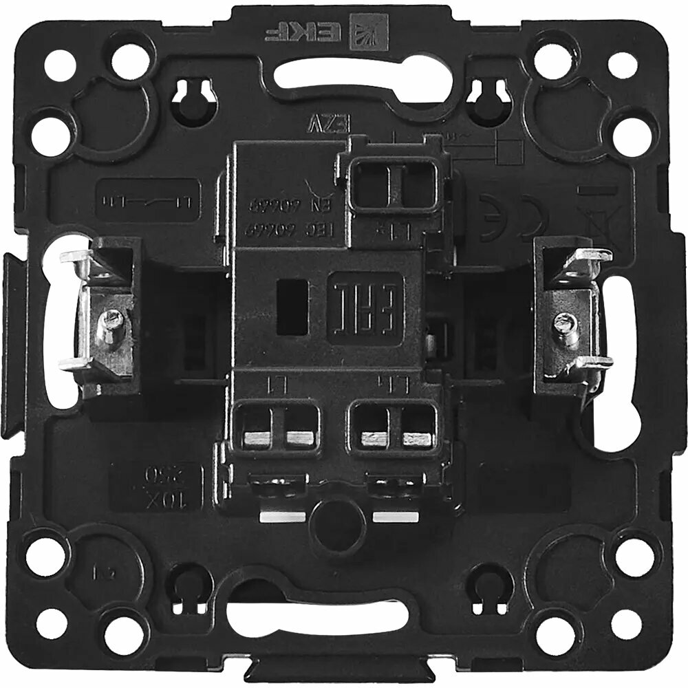 **Выключатель EKF Стокгольм EZV10-021-20** - встраиваемая модель, позволяющая управлять источником света из одной точки. В конструкции предусмотрены автоматические клеммы, отвечающие за удобство подключения проводников. Благодаря мозаичной системе стыковки суппортов значительно упрощается процесс установки механизмов. Универсальные рамки позволяют размещать механизмы в любой плоскости.