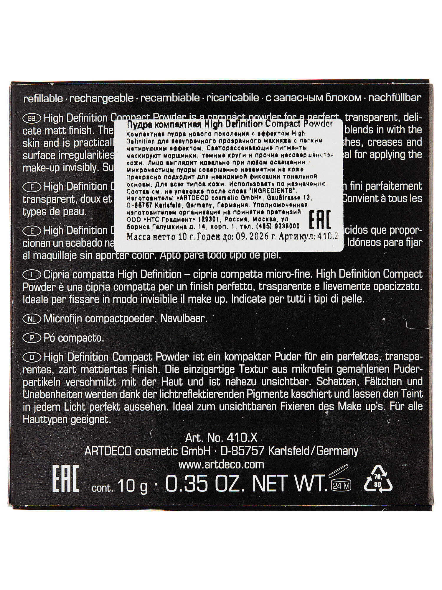 | Полное наименование | ARTDECO Пудра компактная High Definition |