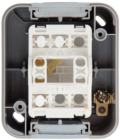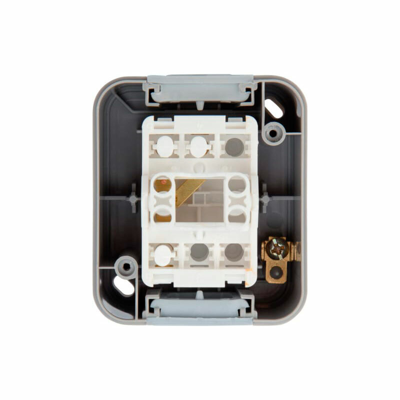 Защитная крышка на лицевой поверхности защищает выключатель от попадания брызг воды. Отлично подойдет для дачи, ванной комнаты, бассейна и улицы, при наличии навеса, защищающего от прямого попадания влаги.
