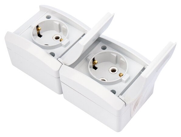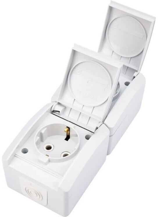 Защитная крышка на лицевой поверхности защищает розетку от попадания брызг воды. Отлично подойдет для дачи, ванной комнаты, бассейна и улицы, при наличии навеса, защищающего от прямого попадания влаги.