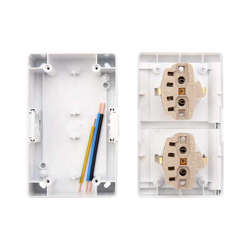 Розетка двойная KRANZ INDUSTRIAL 16A, IP54, с/з, о/у, горизонтальная, керамический корпус механизмаНакладной горизонтальный блок из двух розеток KRANZ предназначен для организации электроснабжения не только в сухом помещении, но и во влажной и пыльной среде. Благодаря лаконичной форме корпуса, он с легкостью впишется в любой интерьер. Защитная крышка на лицевой поверхности защищает розетку от попадания брызг воды. Отлично подойдет для дачи, ванной комнаты, бассейна и улицы, при наличии навеса, защищающего от прямого попадания влаги. Корпус механизма розетки выполнен из абсолютно негорючего материала - керамики. Блок прост и легок в установке. Технические характеристики: напряжение: 220-250 Вчастота тока: 50 Гцноминальный ток: 16 Астепень защиты: IP54сечение проводников: 1.5-2.5 кв. мм. рабочая температура: -25.+40 С.
