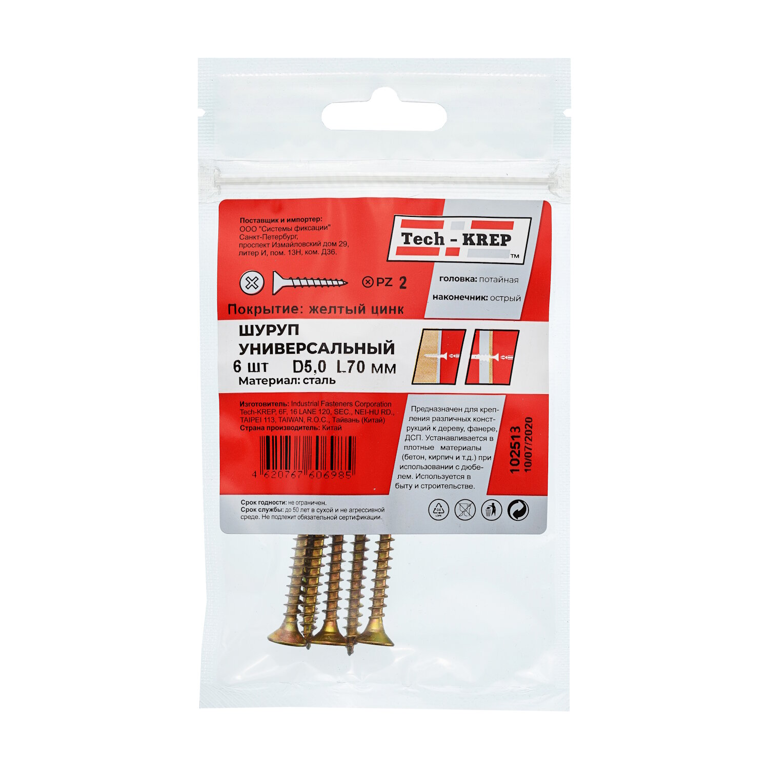 саморез шуж 50х70 пот. гол. (6 шт) Tech-Krep