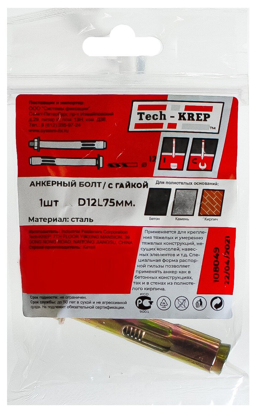 анкерный болт с гайкой 12х75 (1 шт) Tech-Krep