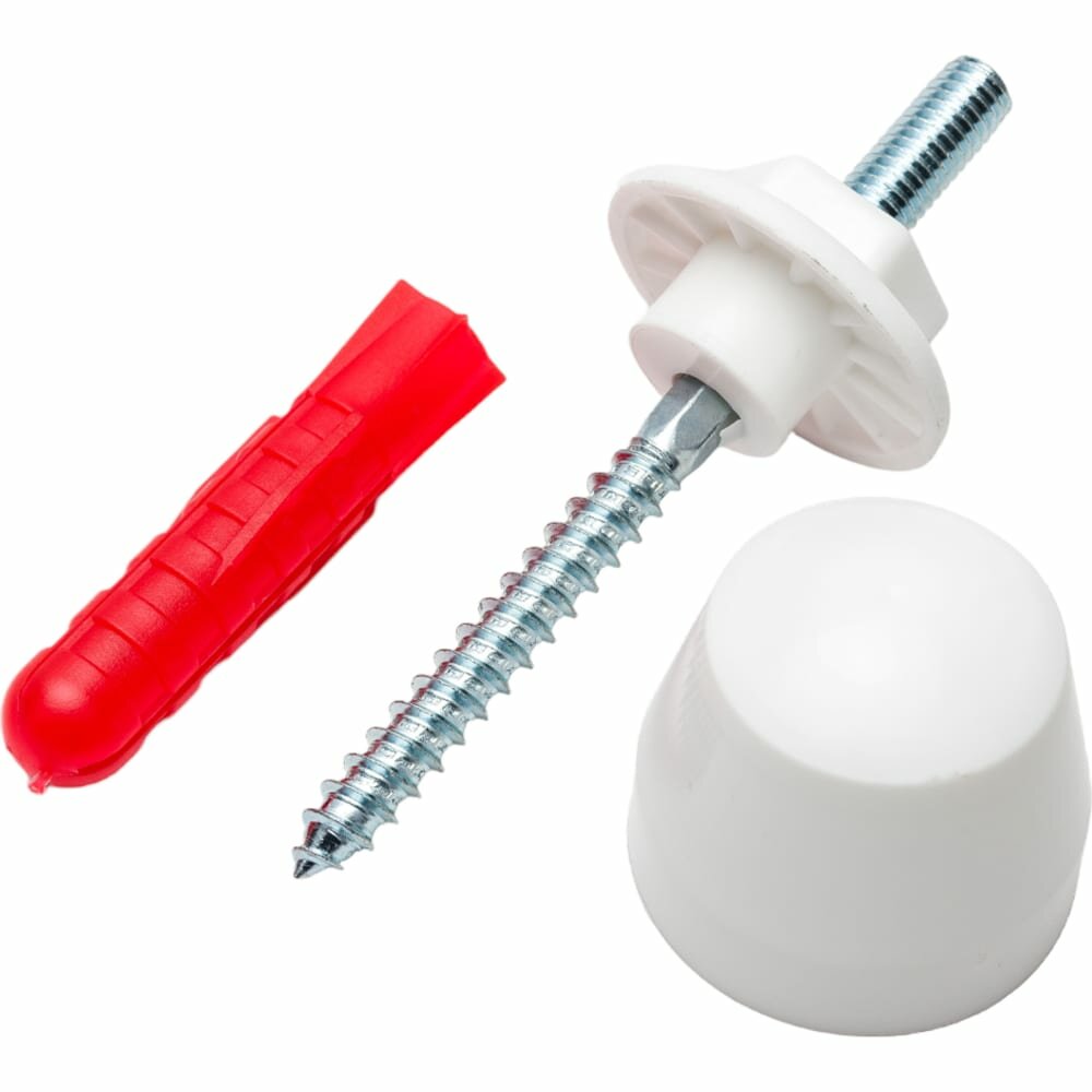Комплект состоит из дюбеля, шурупа-шпильки, втулки, гайки и декоративного колпачка. Применяется для крепления раковин к бетону, камню и полнотелому кирпичу.