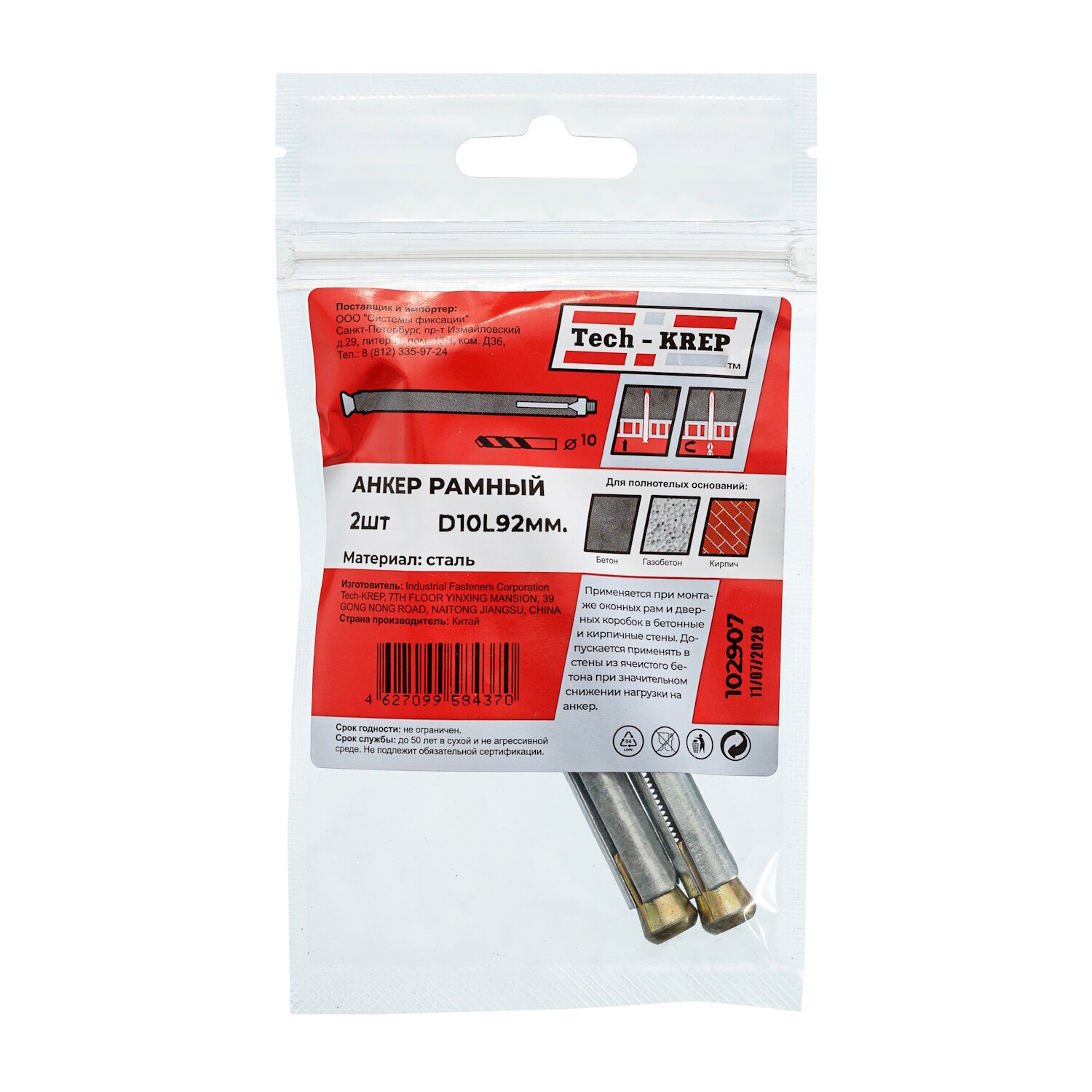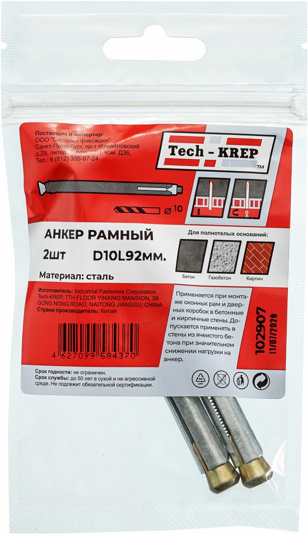 На сегодняшний день товар «дюбель рамный 10*92 /2шт/ Tech-Krep 10х92 2 шт.» можно купить с кешбеком в 1 магазине: Яндекс.Маркет