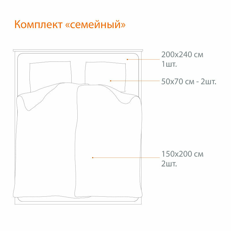 | Комплектация | Пододеяльник 150x200см - 1шт; простыня 200x240см - 1шт; наволочка 50x70см - 2шт |