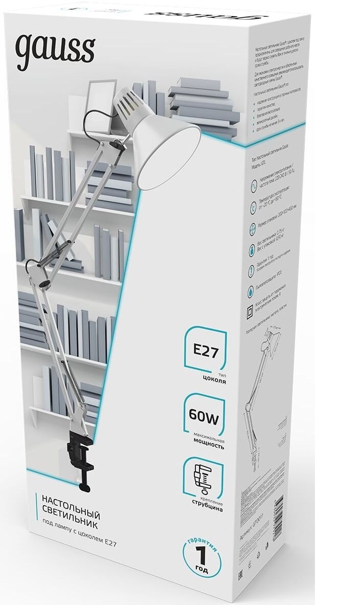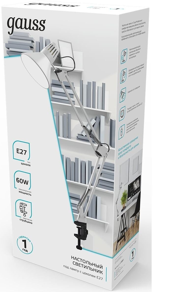 Настольные светильники с классической формой и цоколем E27 отлично подойдут для освещения рабочей зоны. Светильники серии GTL от Gauss в металлическом корпусе представлены в нескольких цветах и могут быть актуальны в любом интерьере. Настольный светильник серии GTL от Gauss - это универсальное решение для подбора нужной мощности и качества освещения. В зависимости от модели светильники поставляются в комплекте с основанием или струбцинным креплением. Рекомендуем использовать светильник со светодиодными лампами Gauss с цоколем E27.