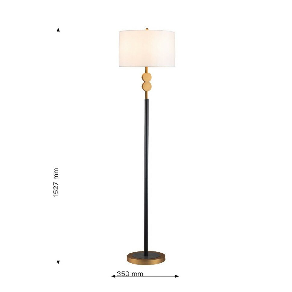 | Оттенок (цвет) | Черный каркас с коричневым основанием, плафон из белой ткани, латунный декоративный элемент в виде двух кругов |