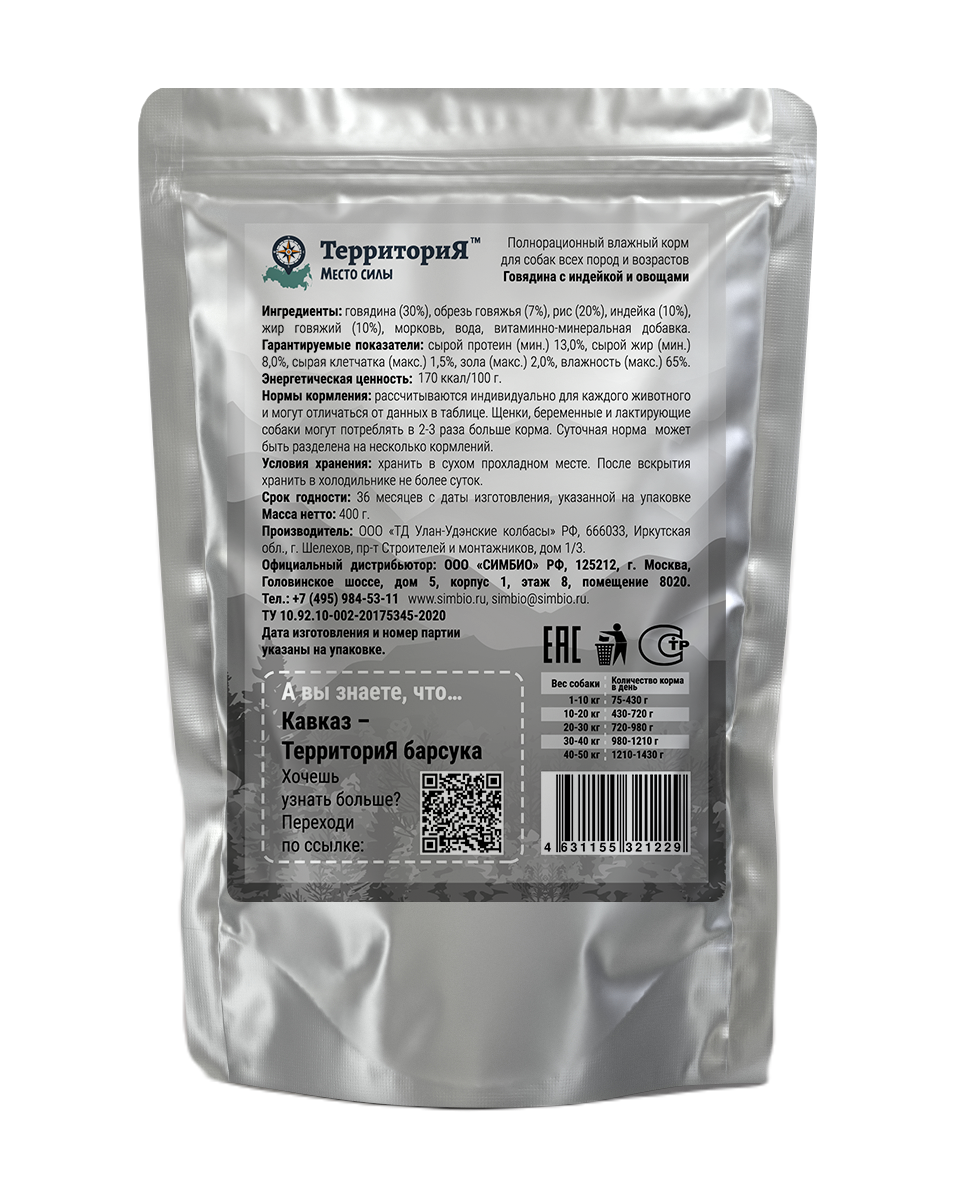 Кавказ говядина с индейкой и овощами пауч 400г Территория
