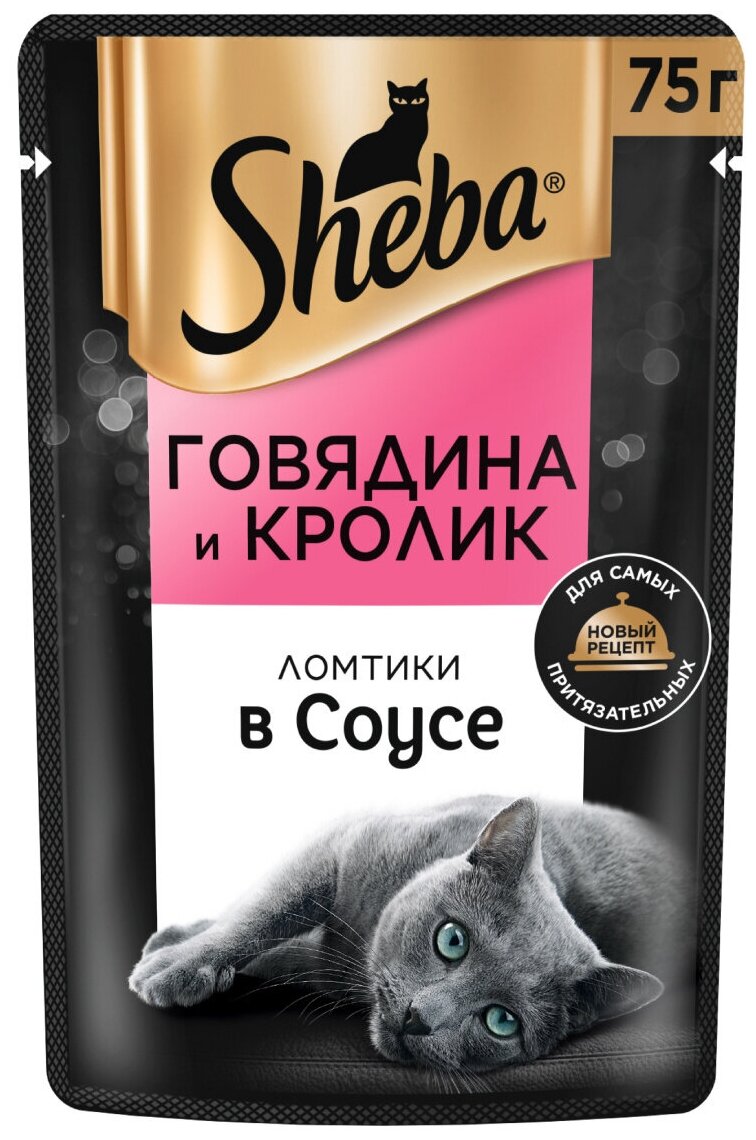 Модель: Корм влажный Sheba Ломтики в соусе с говядиной и кроликом для кошек 75 г