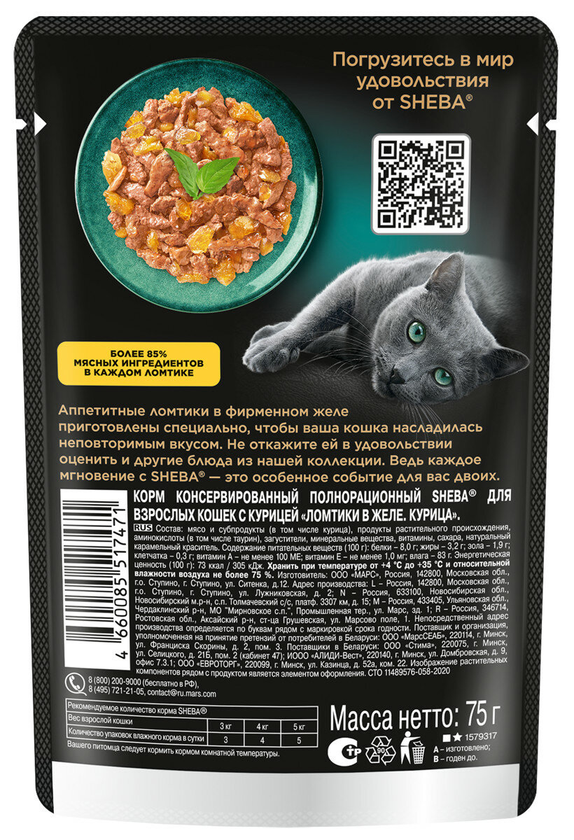 Модель: Корм влажный Sheba Ломтики в желе с курицей для кошек 75 г