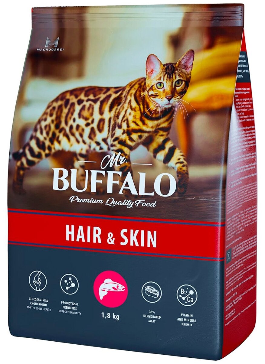 Модель: Корм сухой Mr.Buffalo Adult Hair & Skin лосось для кошек 1.8 кг