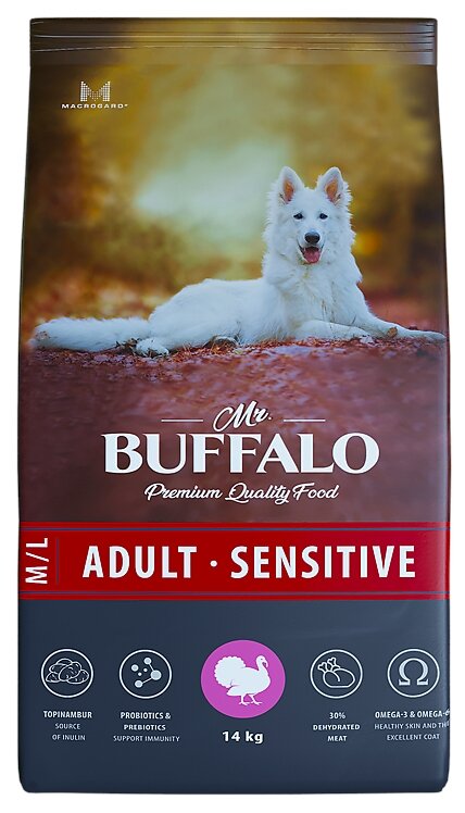 M/L Sensitive для средних и крупных пород индейка сух. 2кг Mr.Buffalo Корм сухой Mr.Buffalo Adult M/L Sensitive индейка для собак средних и крупных пород 2 кг