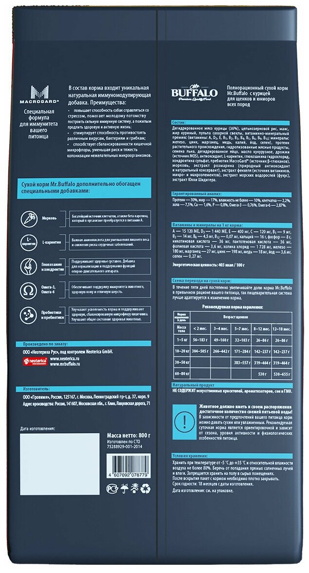 Модель: Корм сухой Mr.Buffalo Puppy & Junior курица для щенков и юниоров 800 г