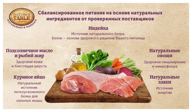 Модель: Корм сухой Nature's Table Индейка с овощами для взрослых собак всех пород 6 кг