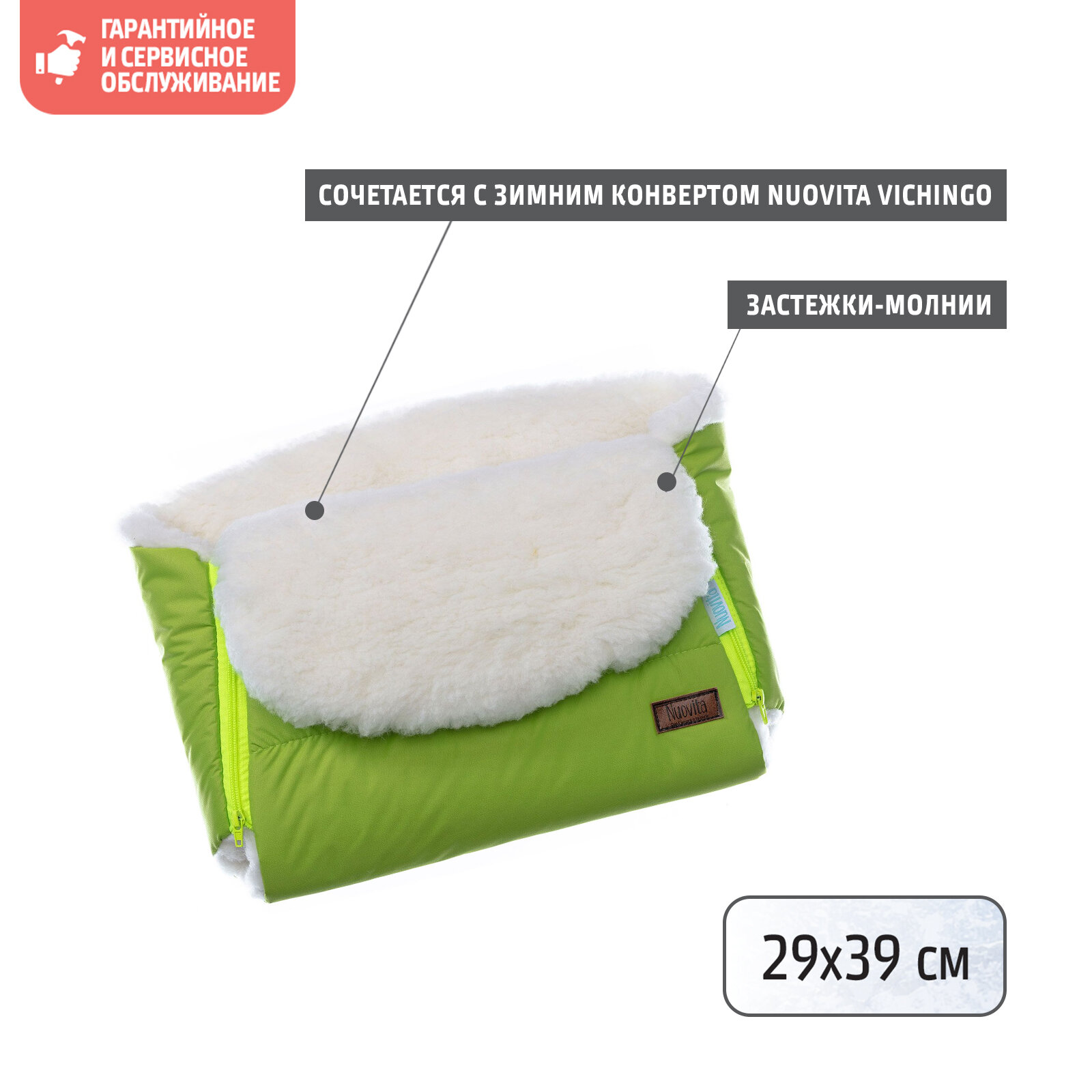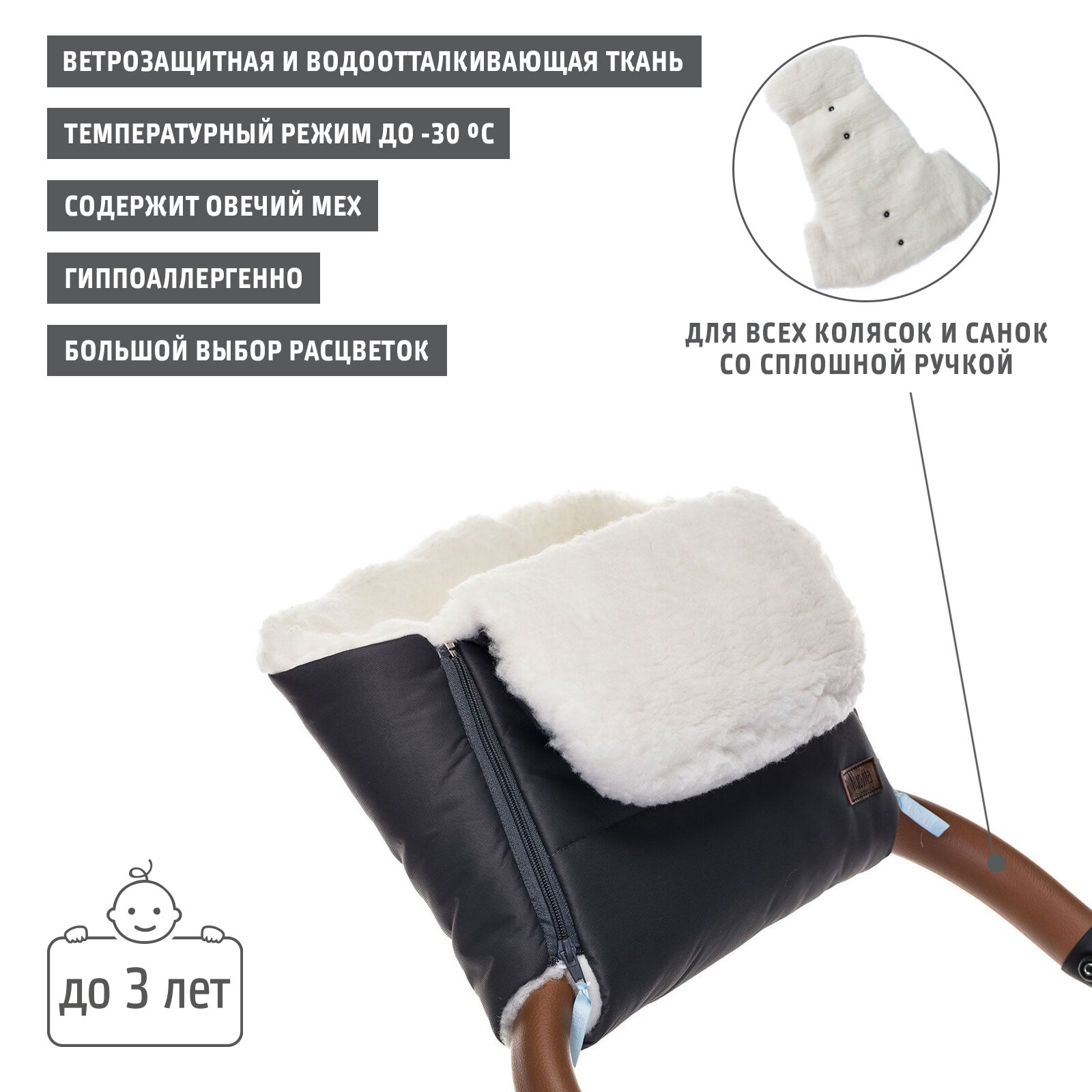 Меховая муфта NUOVITA VICHINGO — привлекательный современный аксессуар для коляски, который обеспечит высокий уровень комфорта во время прогулок с ребенком в холодную погоду. Муфта подходит ко всем типам колясок и санок со сплошной ручкой. Внутренняя часть муфты — смесовая овечья шерсть с пушистым мехом высотой 12 мм. Шерсть обладает природными теплозащитными свойствами и хорошо согревает руки в морозы. Объемный мягкий мех приятно обволакивает кожу, создавая воздушну