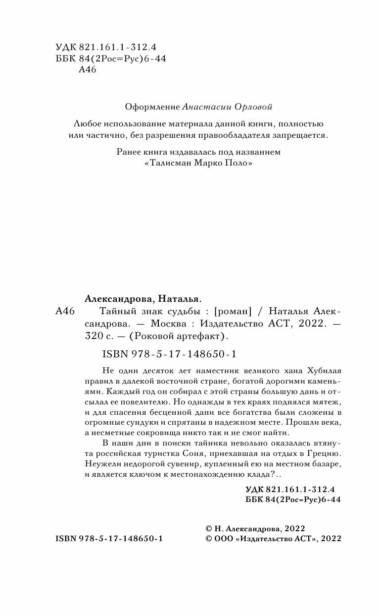 Книга: Тайный знак судьбы (Наталья Александрова); Издательство АСТ, 2022