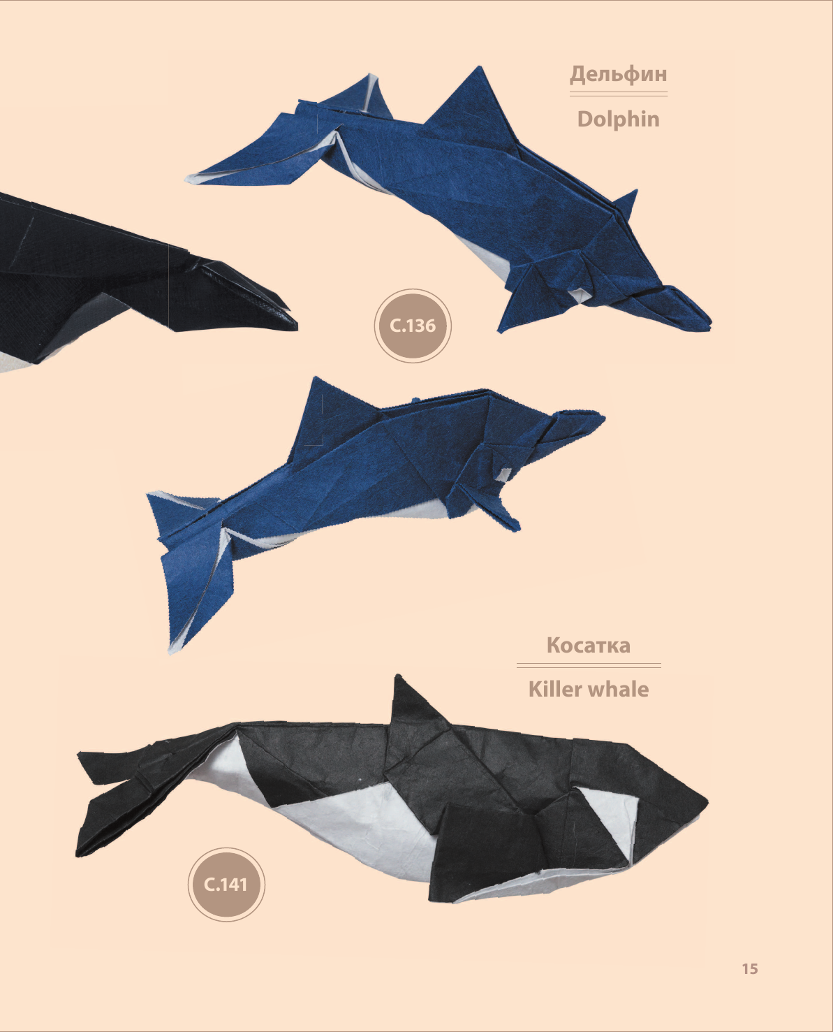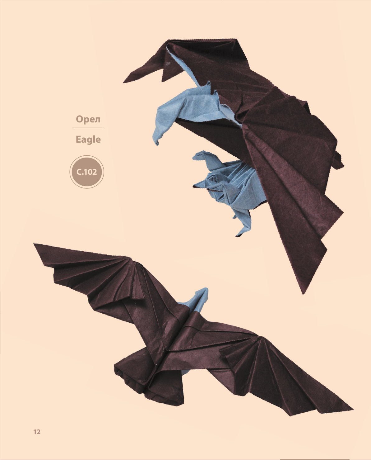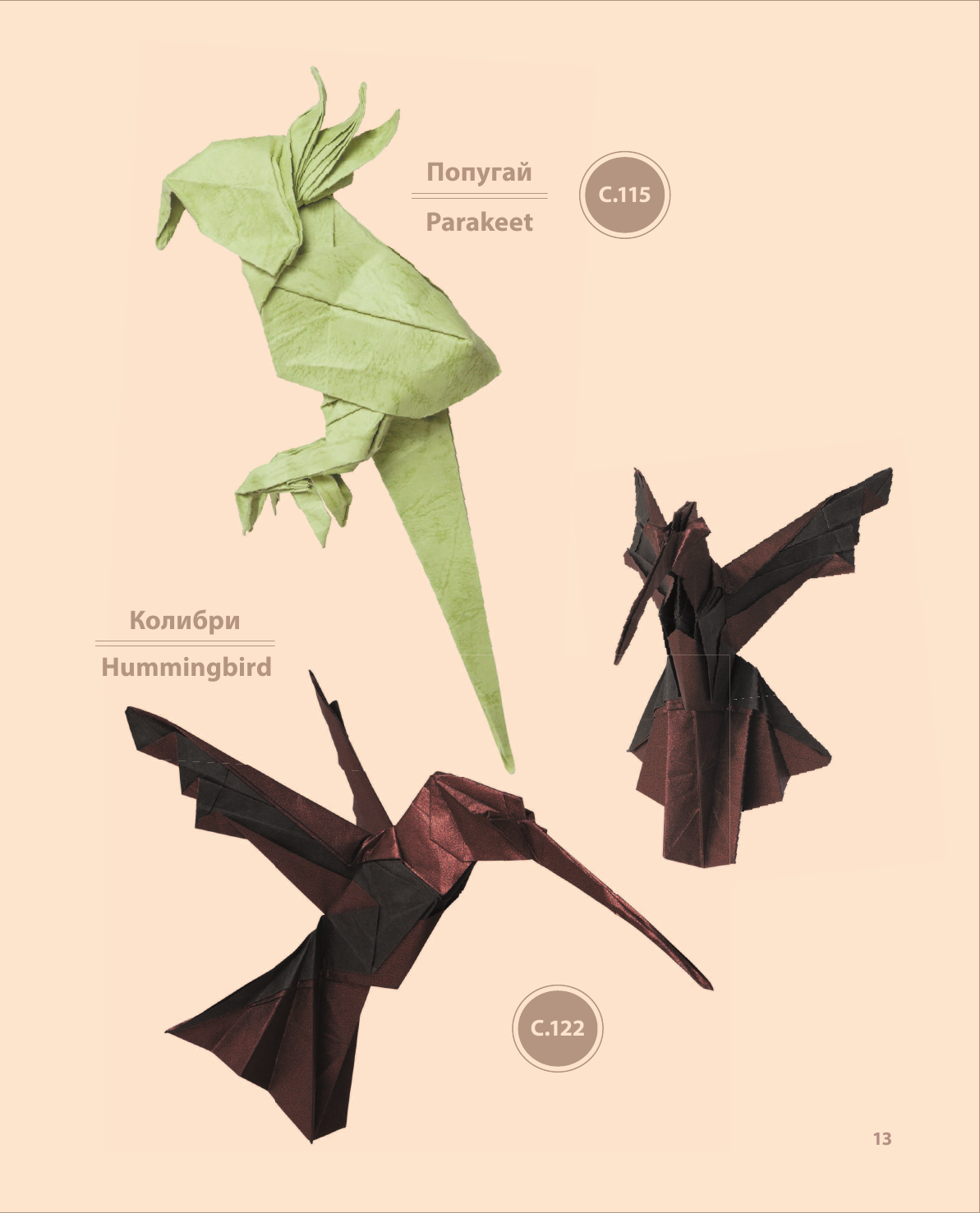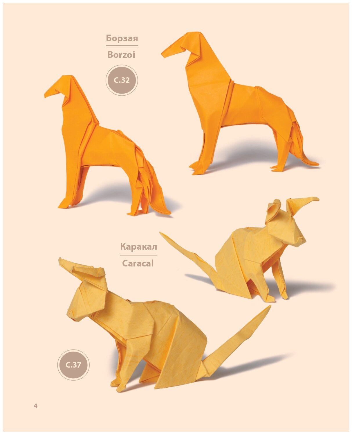 В этой книге представлены инструкции по складыванию из бумаги представителей животного мира. В начале книги идут фотографии готовых фигурок, а рядом дается номер страницы, где начинается инструкция по сборке. После этого есть содержание, где показано разделение схем по категориям: сухопутные животные, крылатые животные, водные животные и вымышленные животные. Далее идут схемы по складыванию, рядом с названием указан уровень сложности. В этой книге три уровня: средний, продвинутый и профессиональный. Это следует учитывать при выборе, так как издание будет интересно только тем, кто занимается оригами уже какое-то время. -