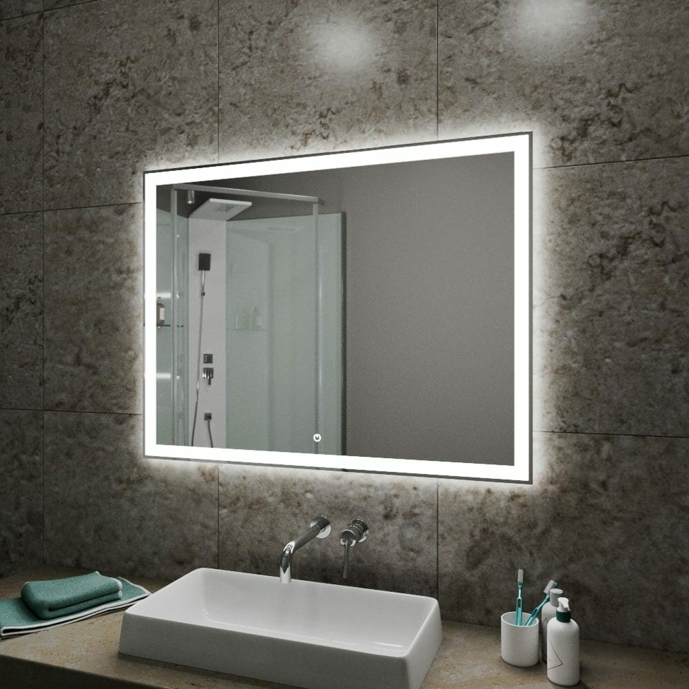 Светодиодное зеркало AVENTINO 1050х700 изготовлено из зеркального полотна толщиной 4 мм. В качестве элемента LED-подсветки используется светодиодная лента с плотностью диодов 120 шт./м мощностью 9,6Вт/м. Электрические компоненты размещены внутри корпуса из высококачественного УПС-пластика. Край полотна обработан еврокромкой. Управление подсветкой осуществляется при помощи сенсорной кнопки, вынесенной на лицевую панель. Зеркало поставляется в комплекте с настенным крепежом.